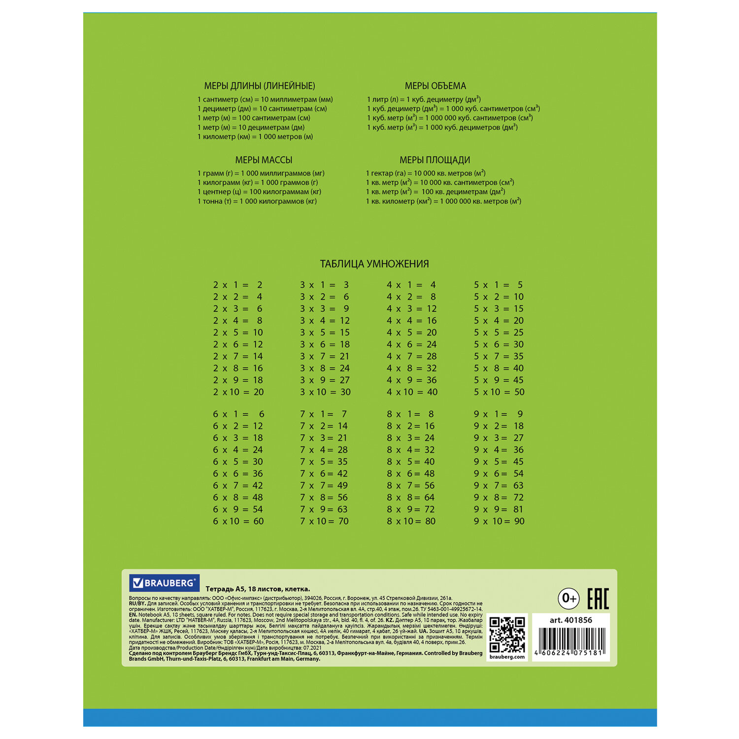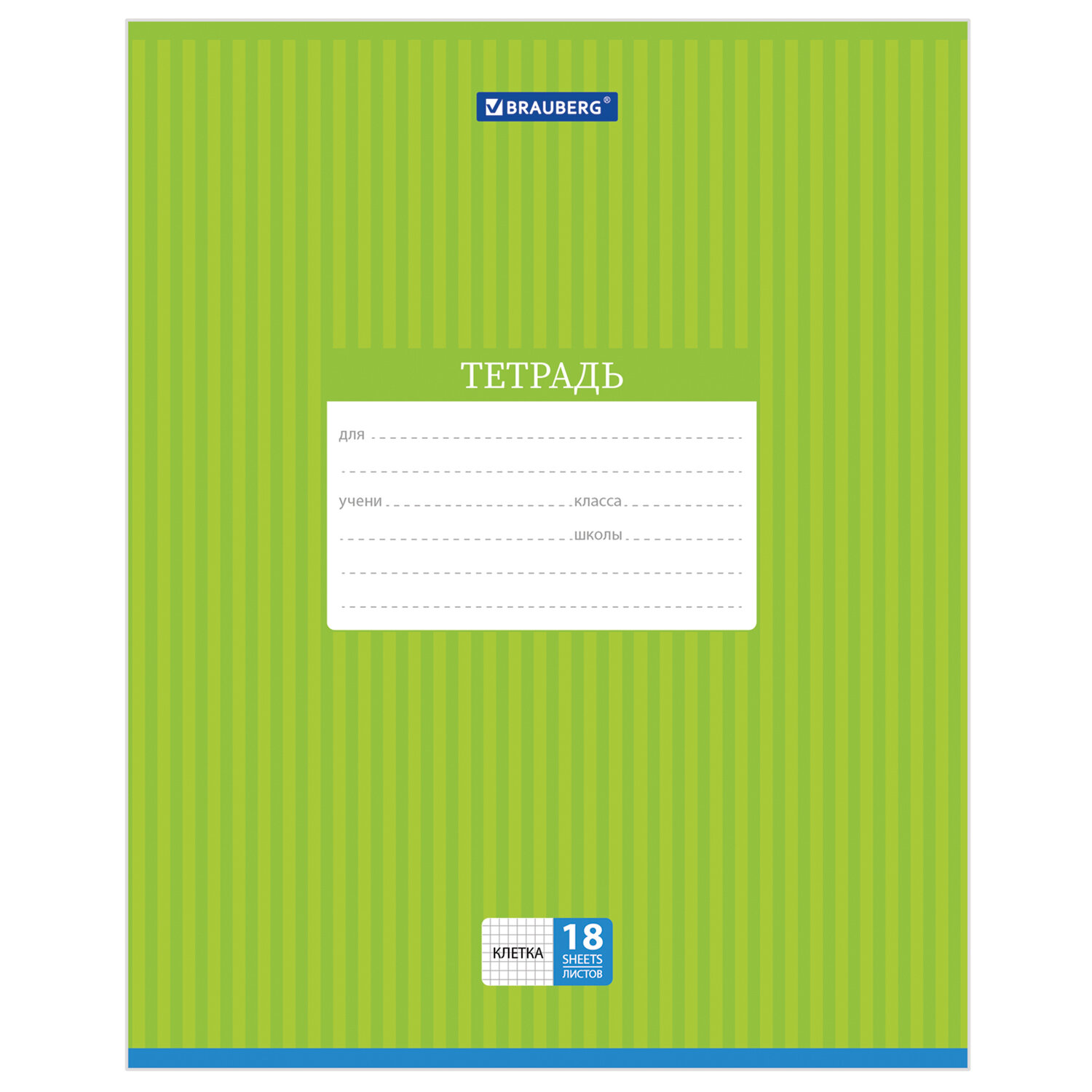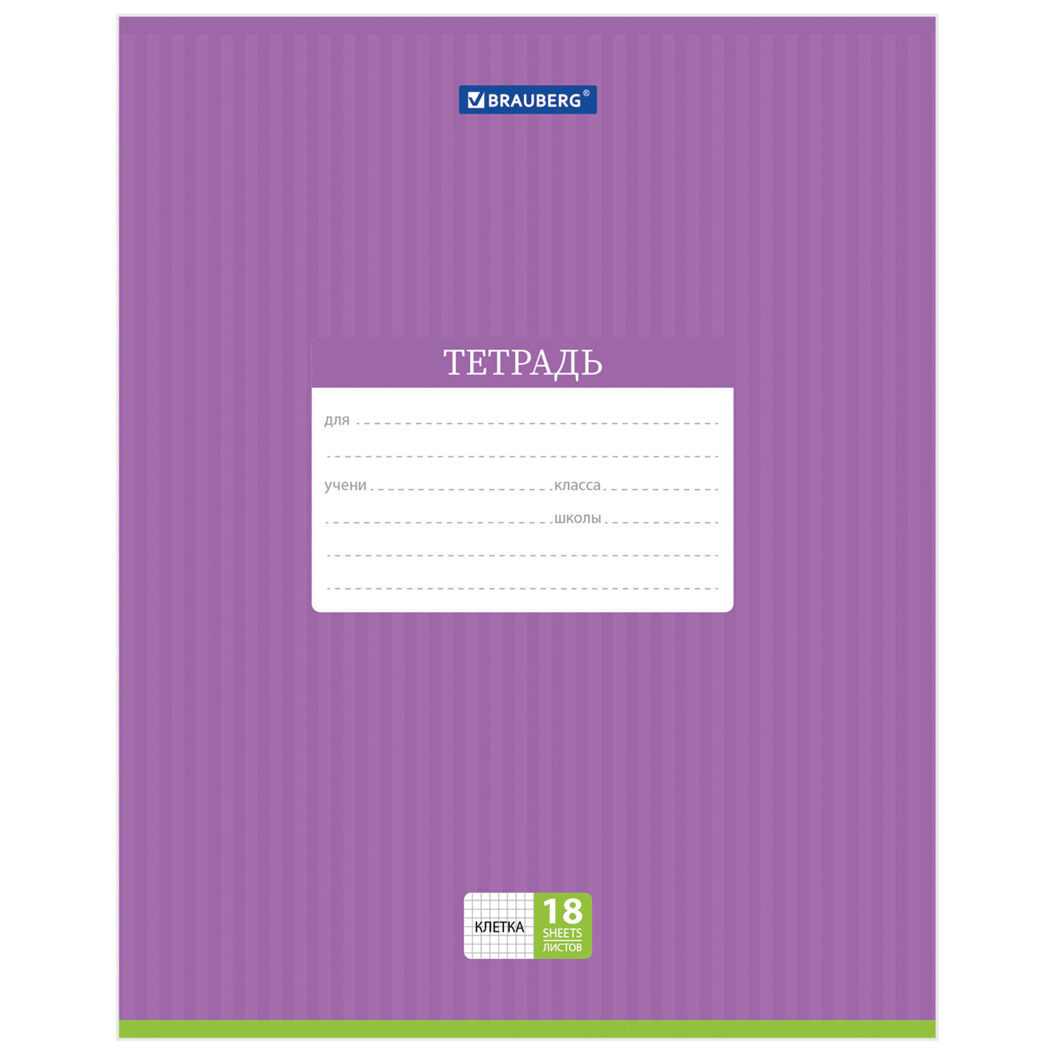 О товаре «Тетрадь 18 л. BRAUBERG, клетка, обложка картон, ПОЛОСКИ ОДНОТОННЫЕ, 401856»