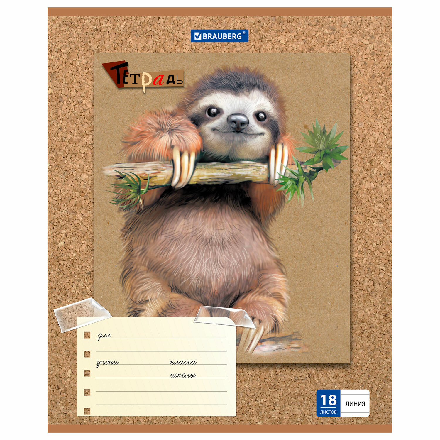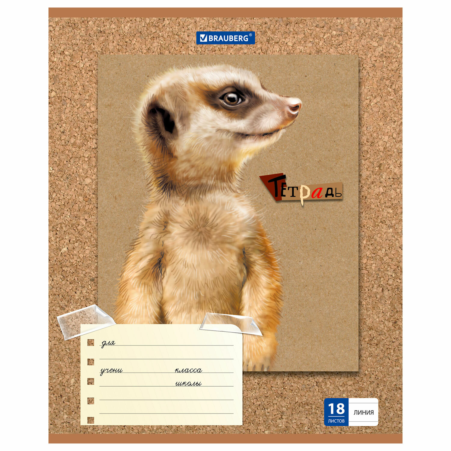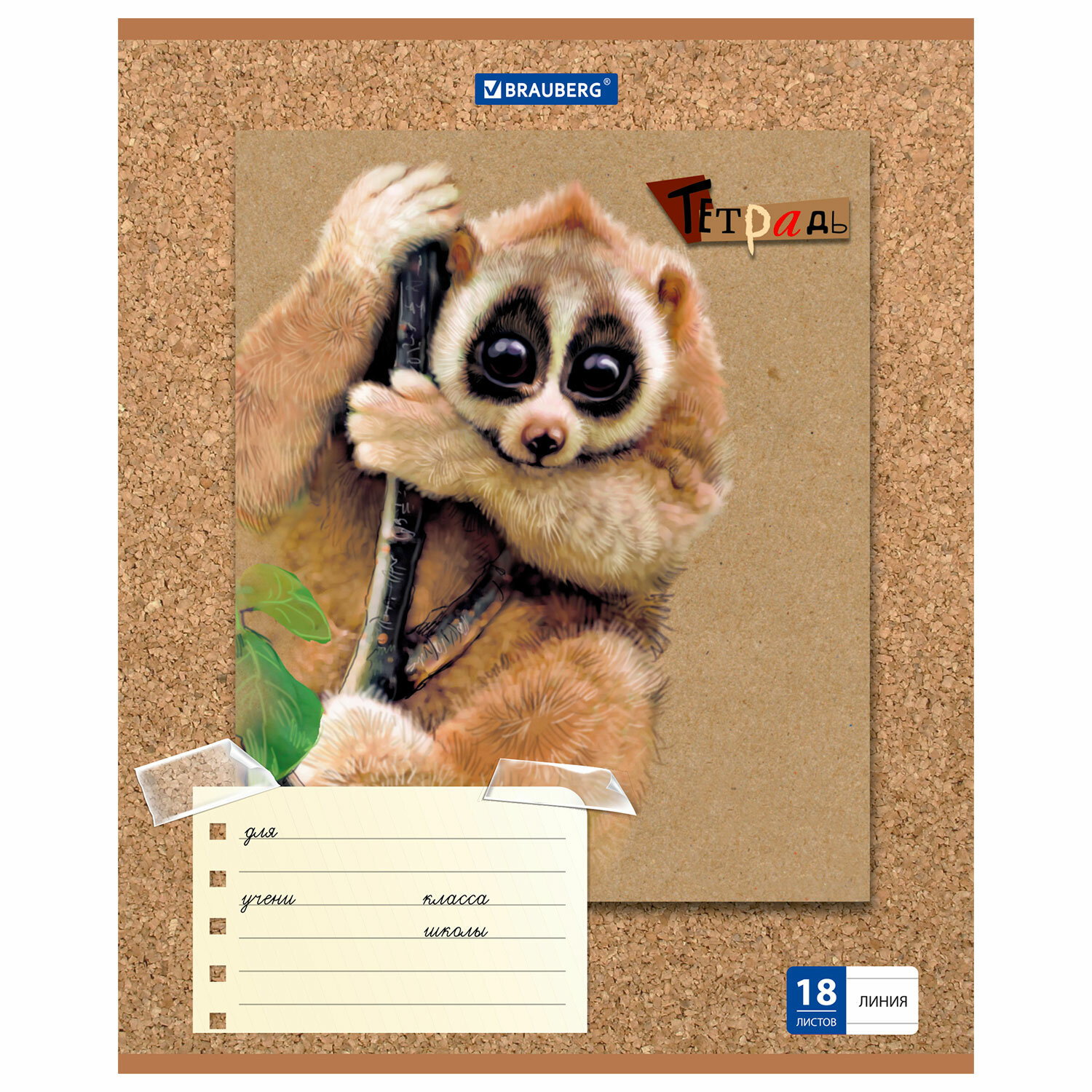 Тетрадь 18 л. BRAUBERG линия, обложка картон, "МИЛЫЕ ЗВЕРУШКИ", 403580