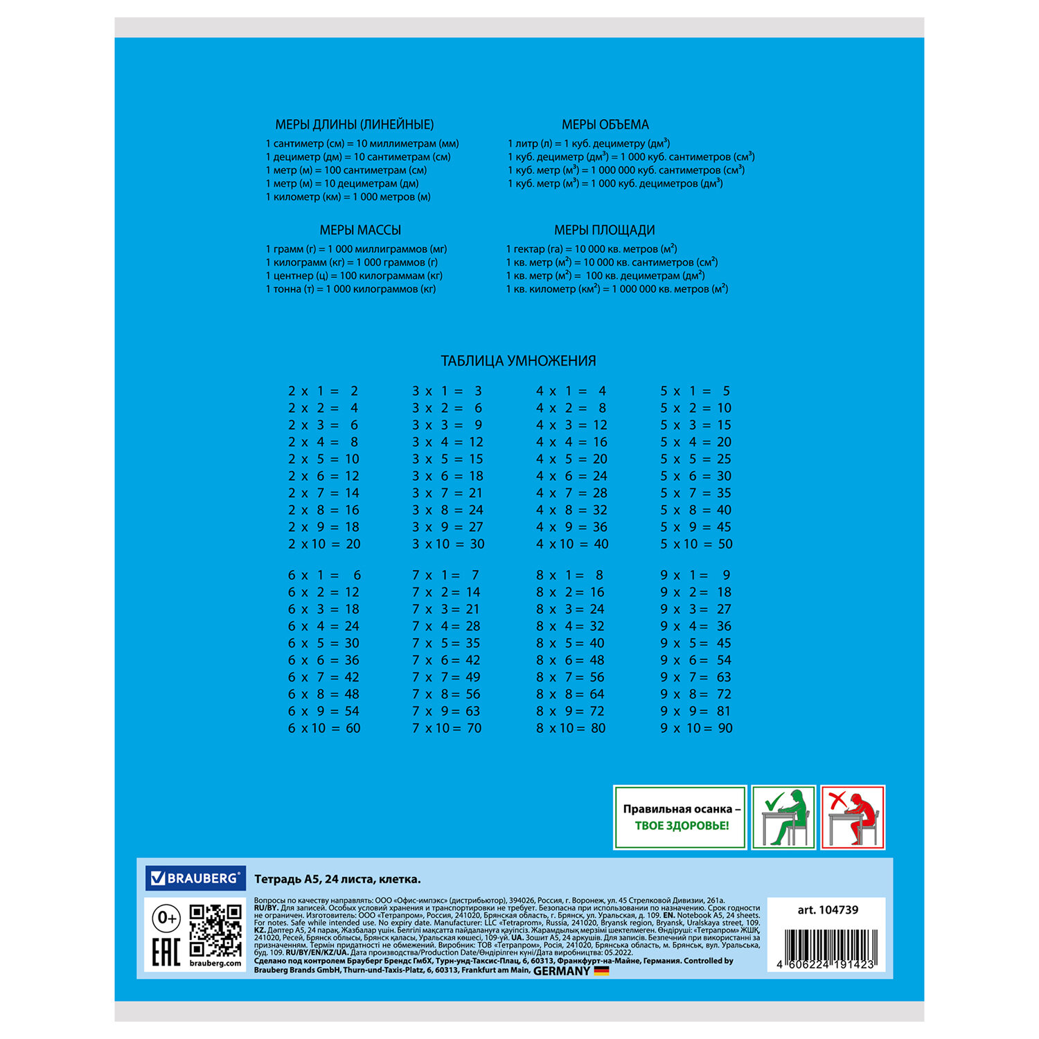 О товаре «Тетрадь 24 л. BRAUBERG КЛАССИКА, клетка, обложка картон, СИНЯЯ, 104739»