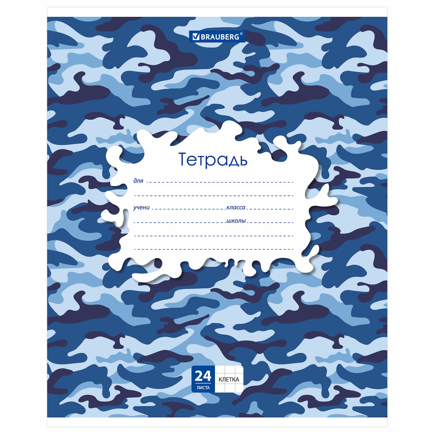 Тетрадь 24 л. BRAUBERG клетка, обложка картон, "КАМУФЛЯЖ", 403584