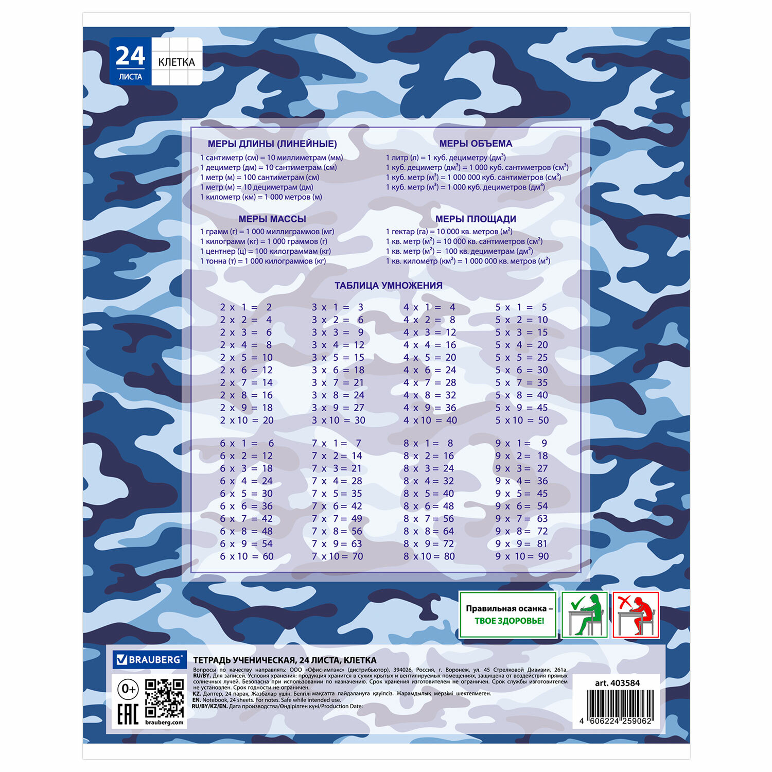 О товаре «Тетрадь 24 л. BRAUBERG клетка, обложка картон, "КАМУФЛЯЖ", 403584»