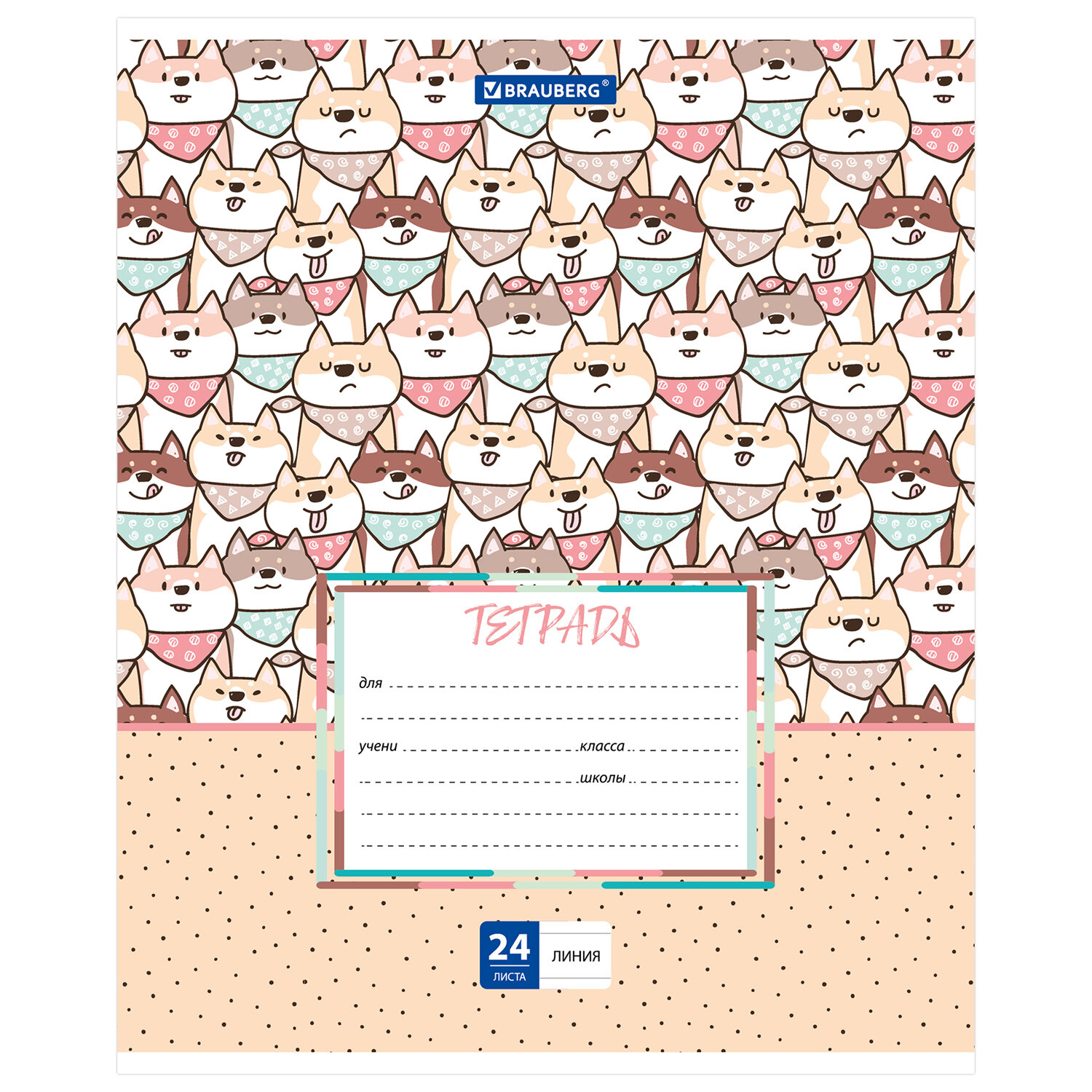 Тетрадь 24 л. BRAUBERG линия, обложка картон, "ЗАБАВНЫЕ ЩЕНКИ", 403585