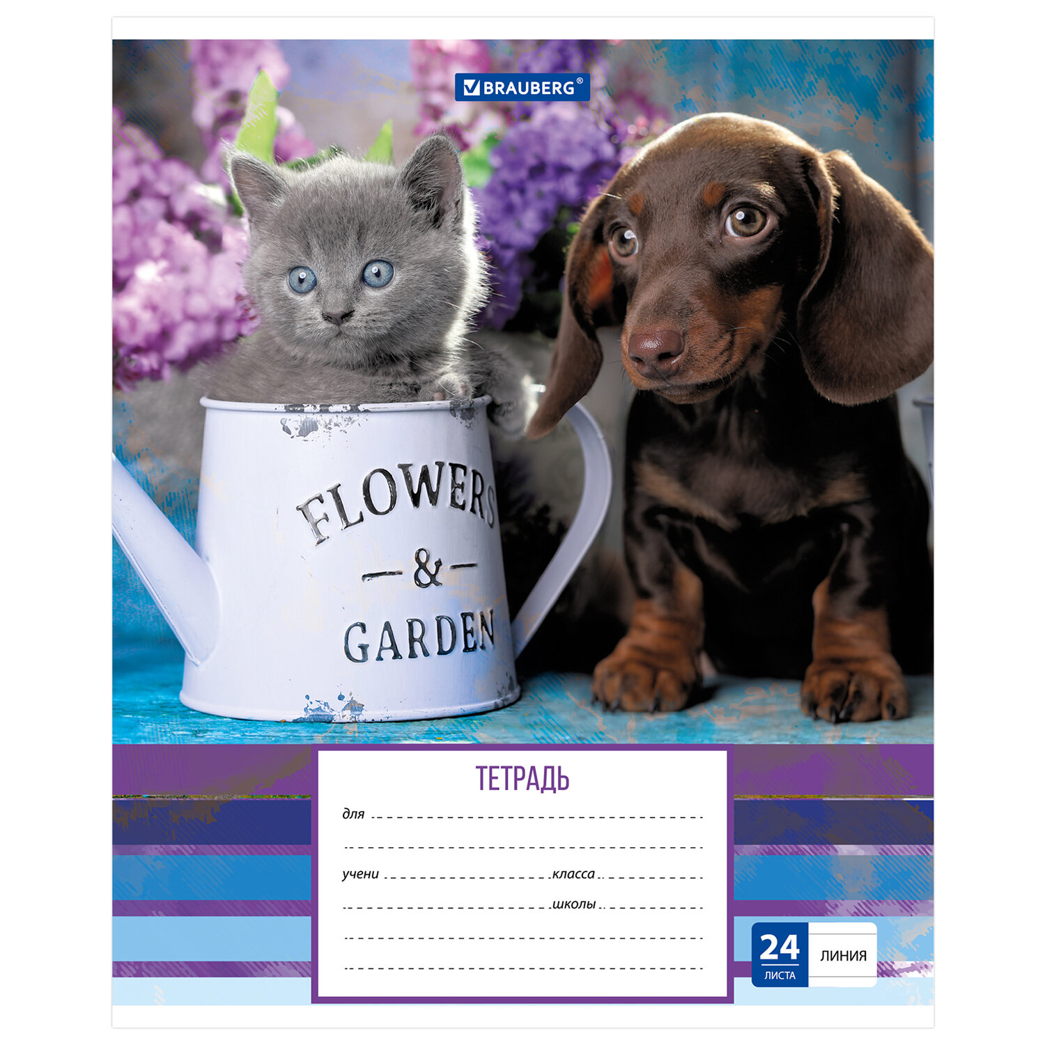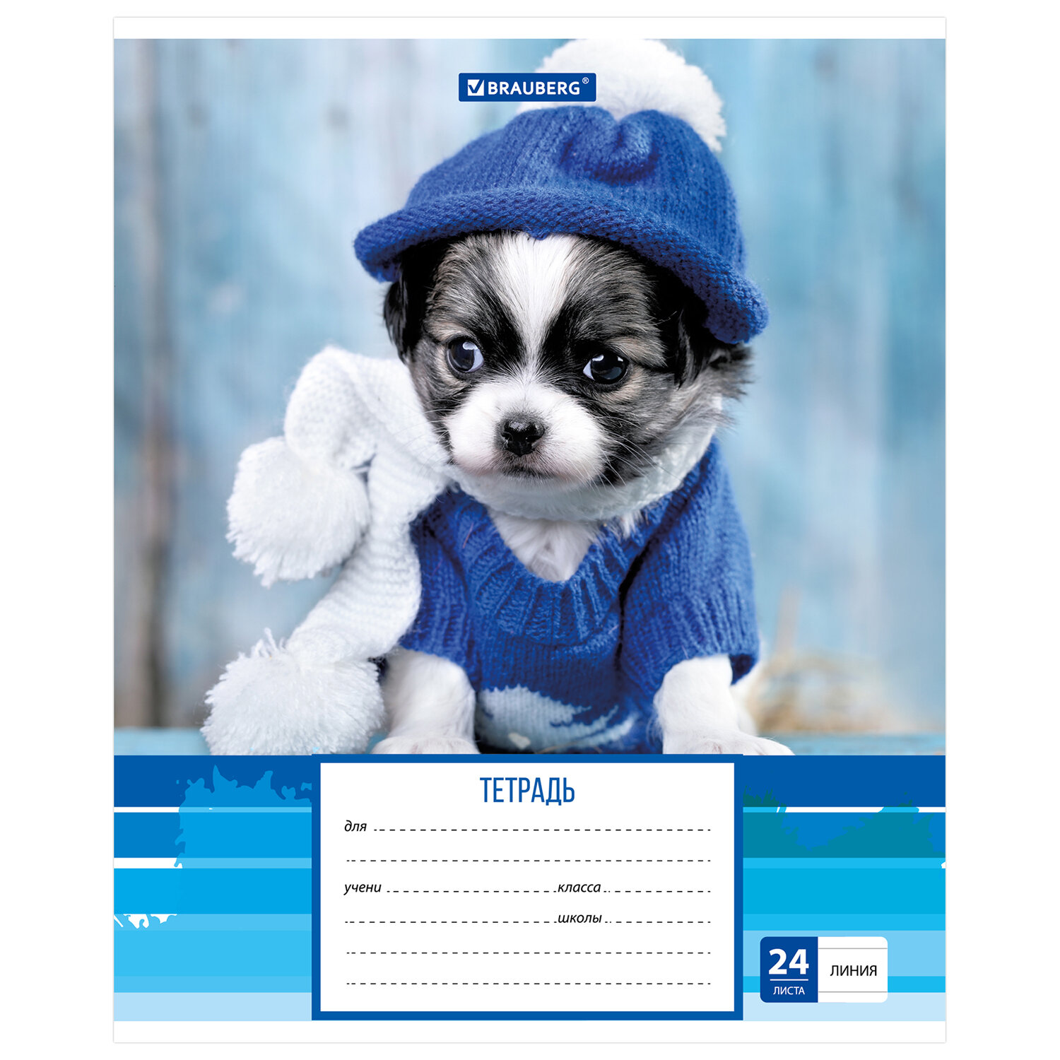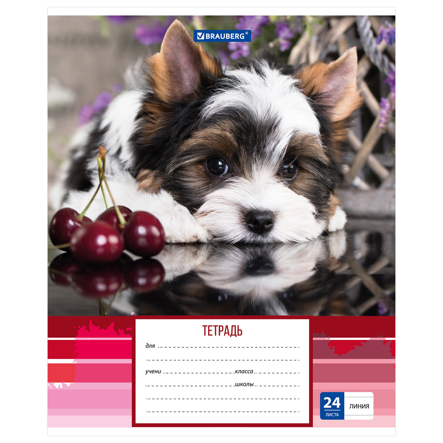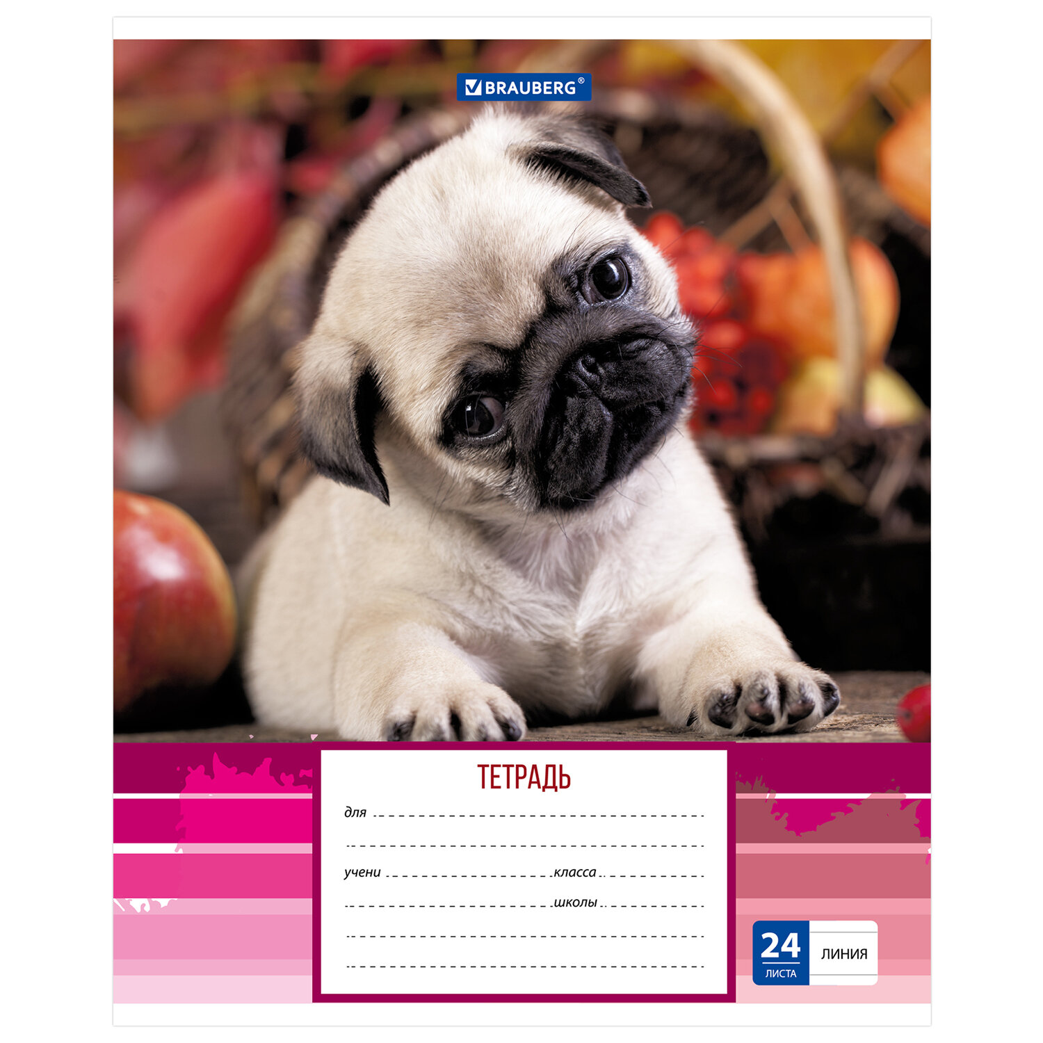 Тетрадь 24 л. BRAUBERG линия, обложка картон, "ЗАБАВНЫЕ ЩЕНКИ", 403585
