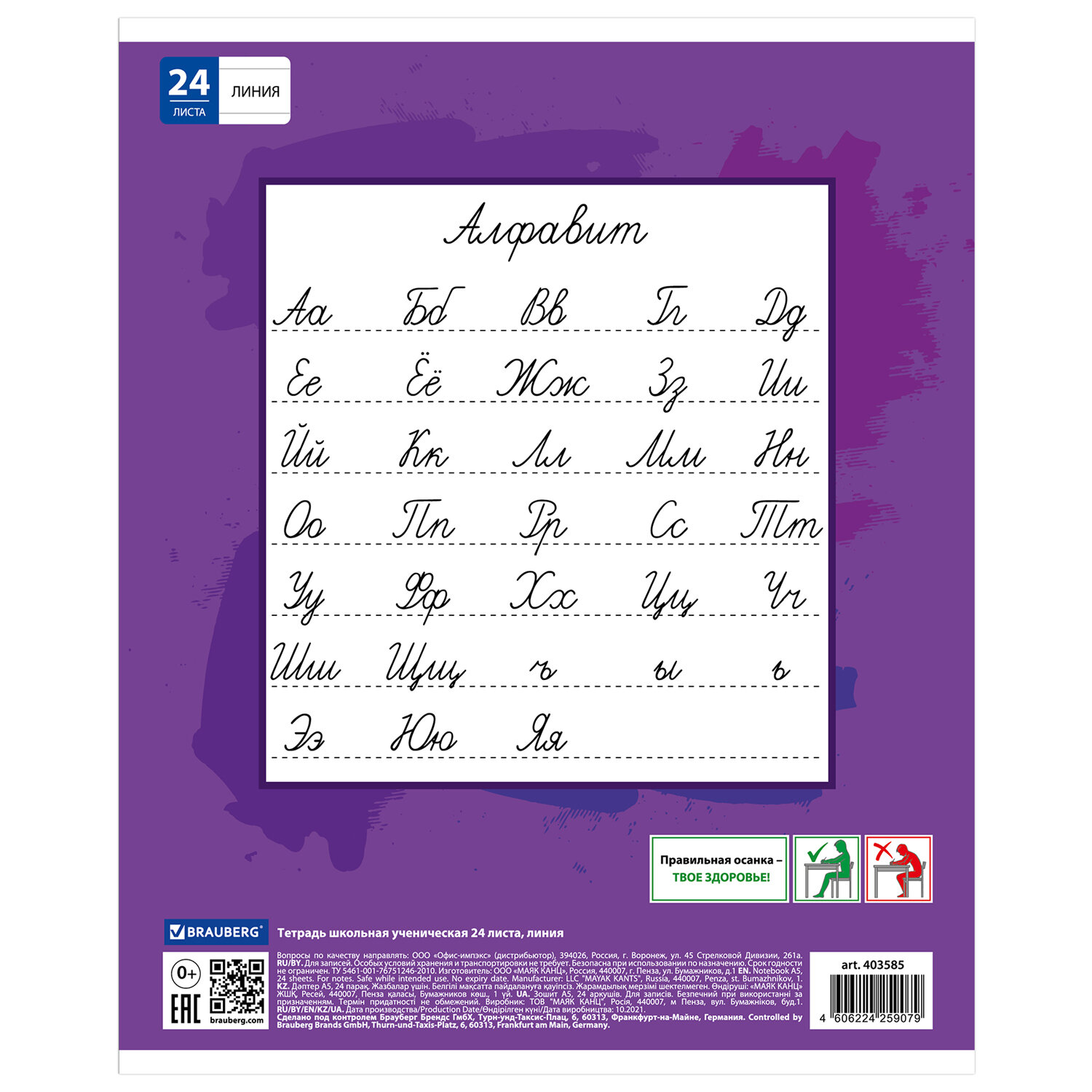 Тетрадь 24 л. BRAUBERG линия, обложка картон, CLASSIC, 107310