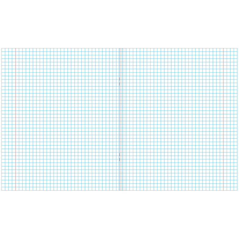 Внутренний блок 24 листа и плотностью 60 г/м2 из офсетной бумаги имеет линовку в клетку с полями. Внутренний блок 92-100% белизны. Обложка также изготовлена из офсета плотностью 80 г/м2. Скрепка надежно скрепляет листы между собой.