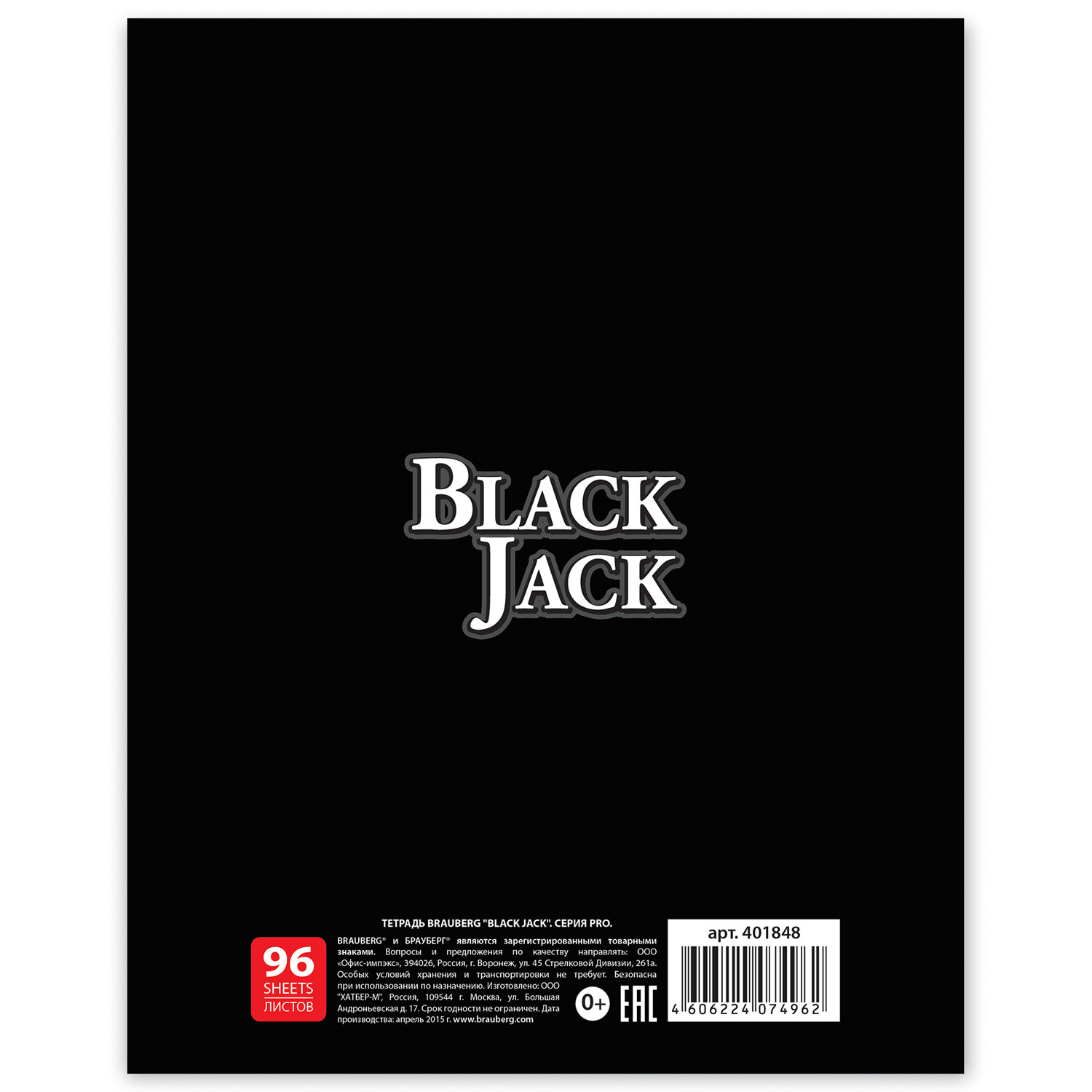 О товаре «Тетрадь А5, 96 л., BRAUBERG, скоба, клетка, выборочный лак, БЛЭК ДЖЭК, 401848»