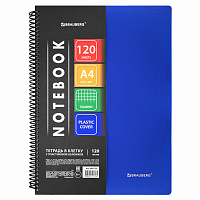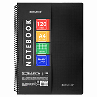 Тетрадь А4, 120 л., BRAUBERG, гребень, клетка, обложка твердая, "Office", 404073
