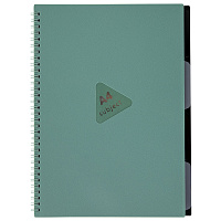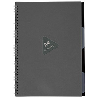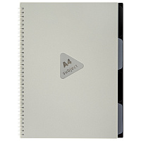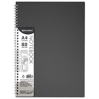 Внутренний блок содержит 80 листов офсетной бумаги плотностью 60 г/м2. Обложка изготовлена из жесткого переплетного картона с глянцевой ламинацией. С такой обложкой можно делать записи на весу. Линовка – клетка. Гребень надежно скрепляет листы между собой. Белизна – 100%. Формат А4.