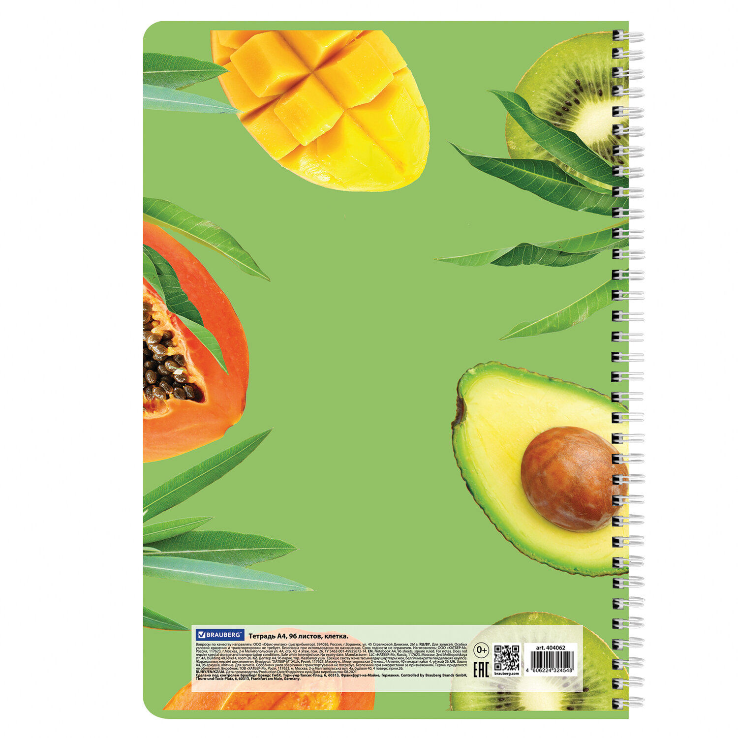 О товаре «Тетрадь А4, 96 л., BRAUBERG, гребень, клетка, матовая ламинация, "Exotic", 404062»