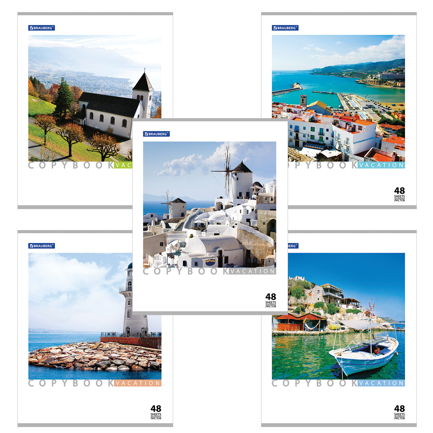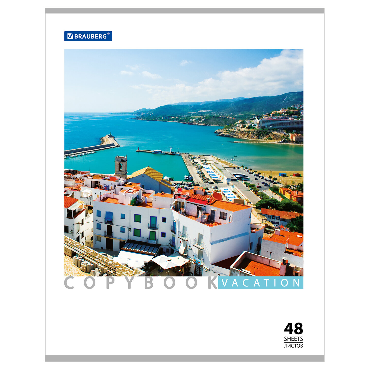 Тетрадь А5, 48 л., BRAUBERG скоба, клетка, обложка картон, КАНИКУЛЫ, 401819