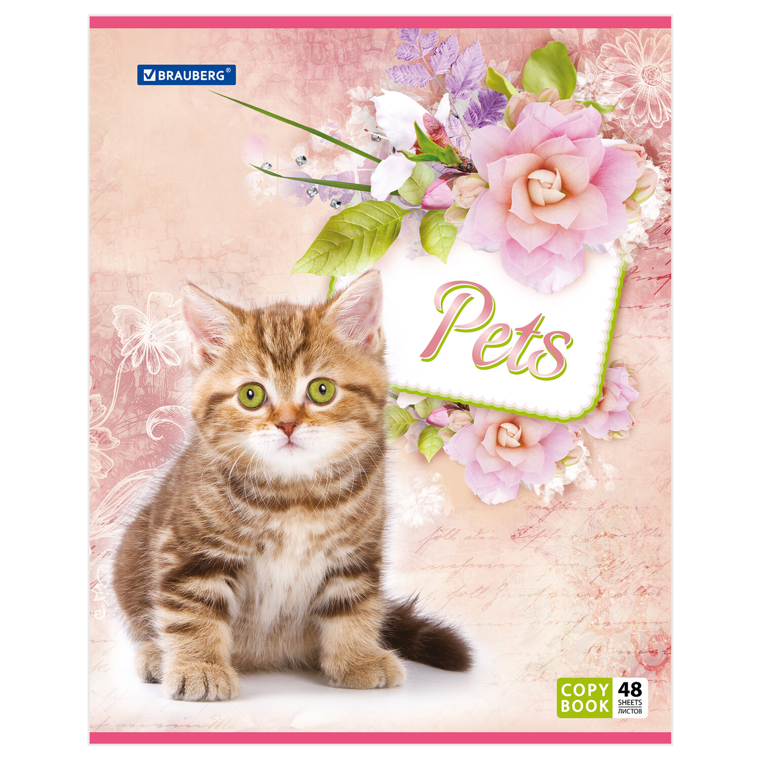 Тетрадь А5, 48 л., BRAUBERG, скоба, клетка, обложка картон, МОРДАШКА, 402045