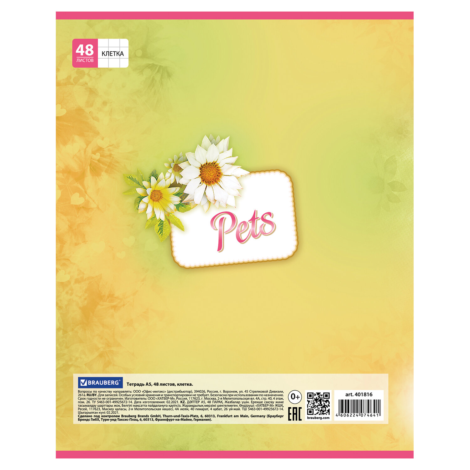 О товаре «Тетрадь А5, 48 л., BRAUBERG, скоба, клетка, обложка картон, ЛЮБИМЧИКИ, 401816»