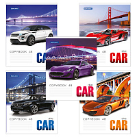 Тетрадь А5, 48 л., BRAUBERG скоба, клетка, обложка картон, АВТО, 401282