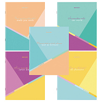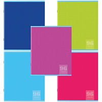 Внутренний блок содержит 96 листов офсетной бумаги плотностью 60 г/м2. Обложка изготовлена из мелованного картона с глянцевой ламинацией. Линовка - клетка с полями. Скрепка надежно скрепляет листы между собой. Белизна - 100%. Формат А5.