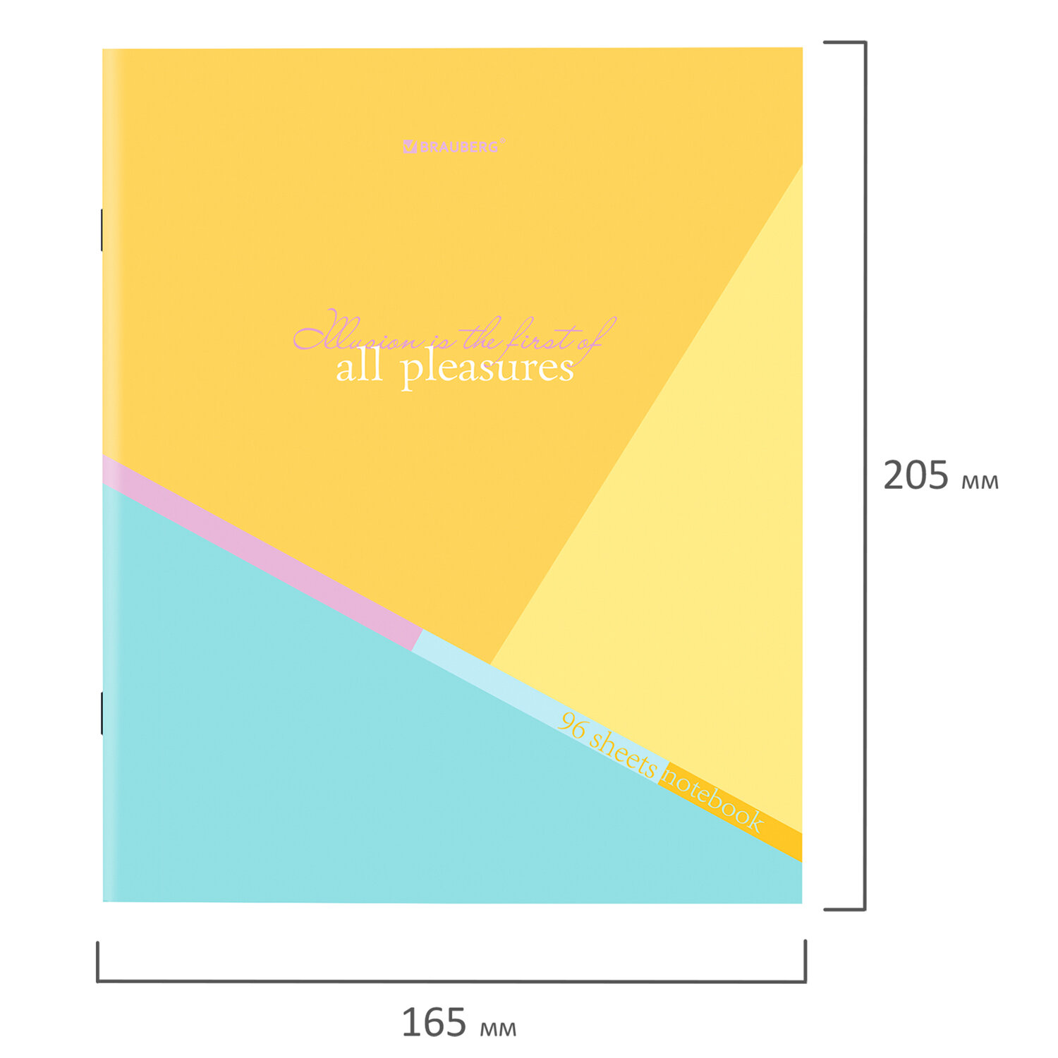 Внутренний блок содержит 96 листов офсетной бумаги плотностью 60 г/м2. Обложка изготовлена из мелованного картона. Линовка - клетка с полями. Скрепка надежно скрепляет листы между собой. Белизна - 100%. Формат А5.