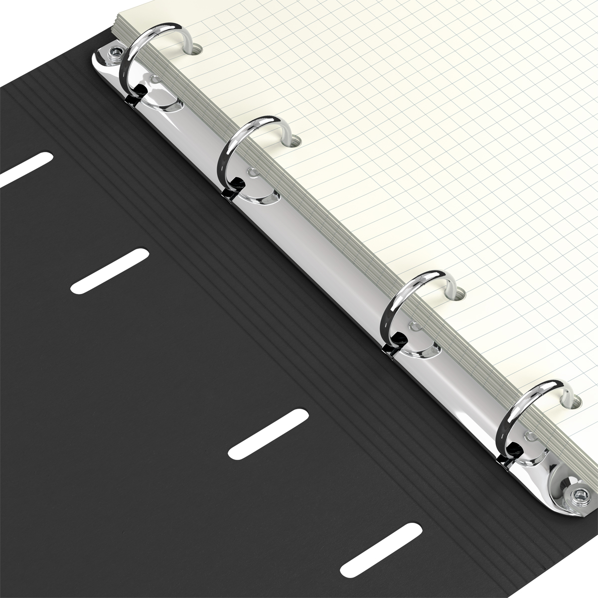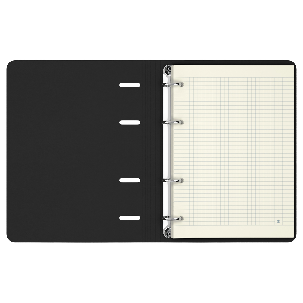 Тетрадь общая на кольцах Greenwich Line формата А5 (170*215 мм) – надежный помощник на учёбе и работе. В ней удобно хранить большой объем записей. Внутренний блок – 80 листов тонированной бумаги плотностью 80 г/м², белизна – 100%, линовка – клетка. Обложка выполнена из высококачественной экокожи и имеет стильный дизайн. Тип крепления – кольцевой механизм, состоящий из 4 колец. При необходимости можно менять или добавлять листы. Тетрадь упакована в пакет.