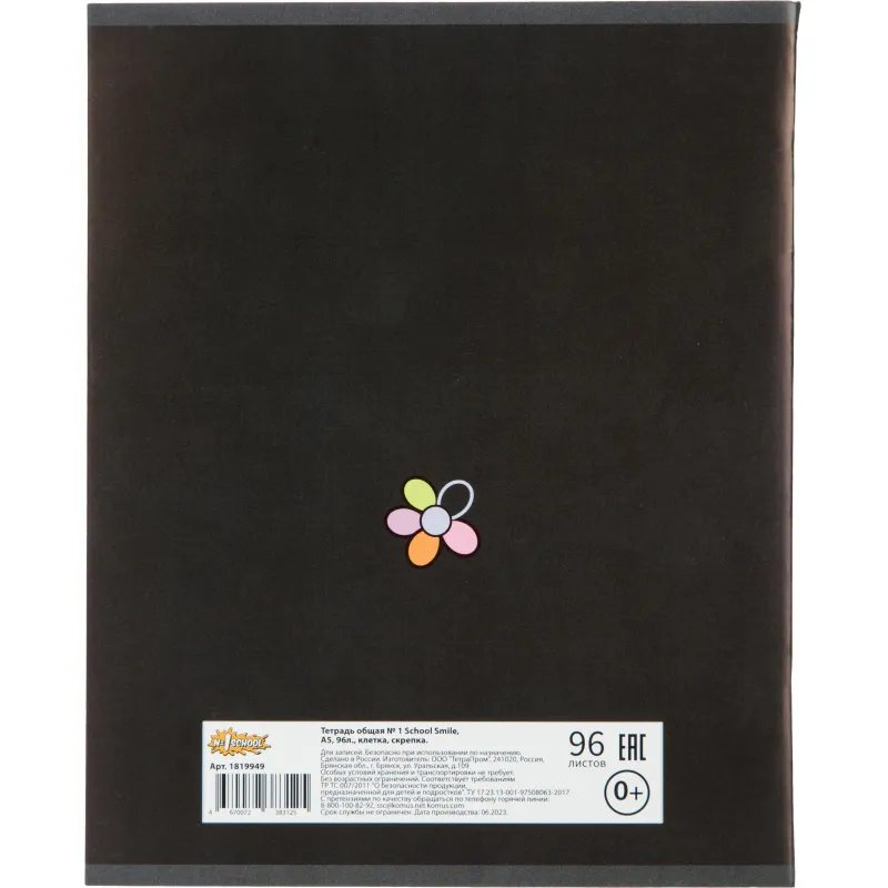 О товаре «Тетрадь общая №1 School Smile А5 96 листов в клетку на скрепке обложка с рисунком ВД-лак»