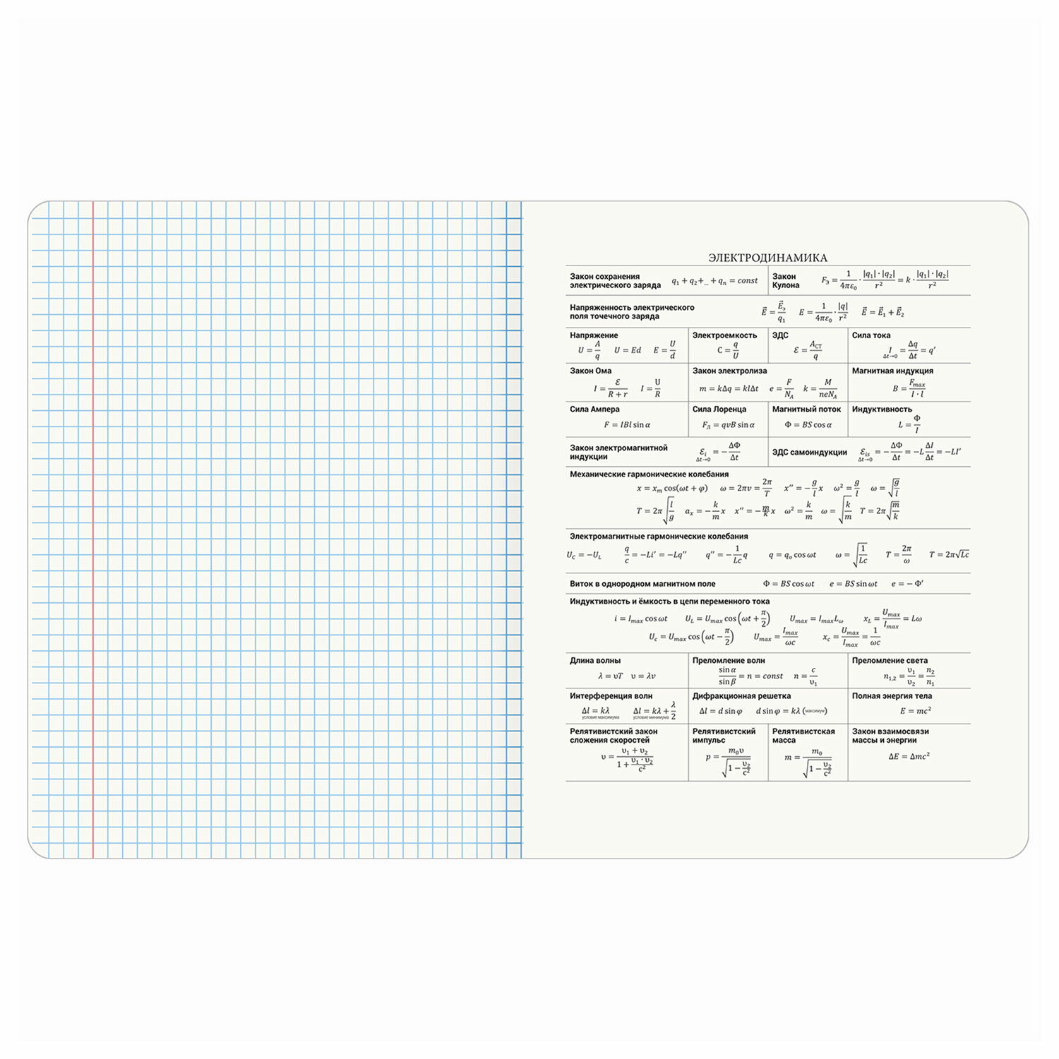 Тетрадь по физике формата А5 (165х202 мм) содержит 48 листов, изготовленных из высококачественной офсетной бумаги плотностью 60 г/м2 и белизной 100%.