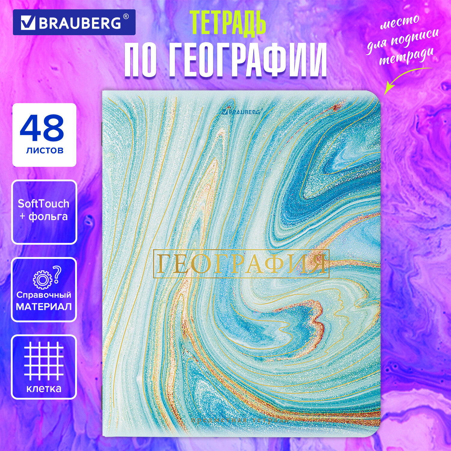Тетрадь предметная "PASTEL" 48 л., SoftTouch, фольга, ГЕОГРАФИЯ, клетка, BRAUBERG, 404313