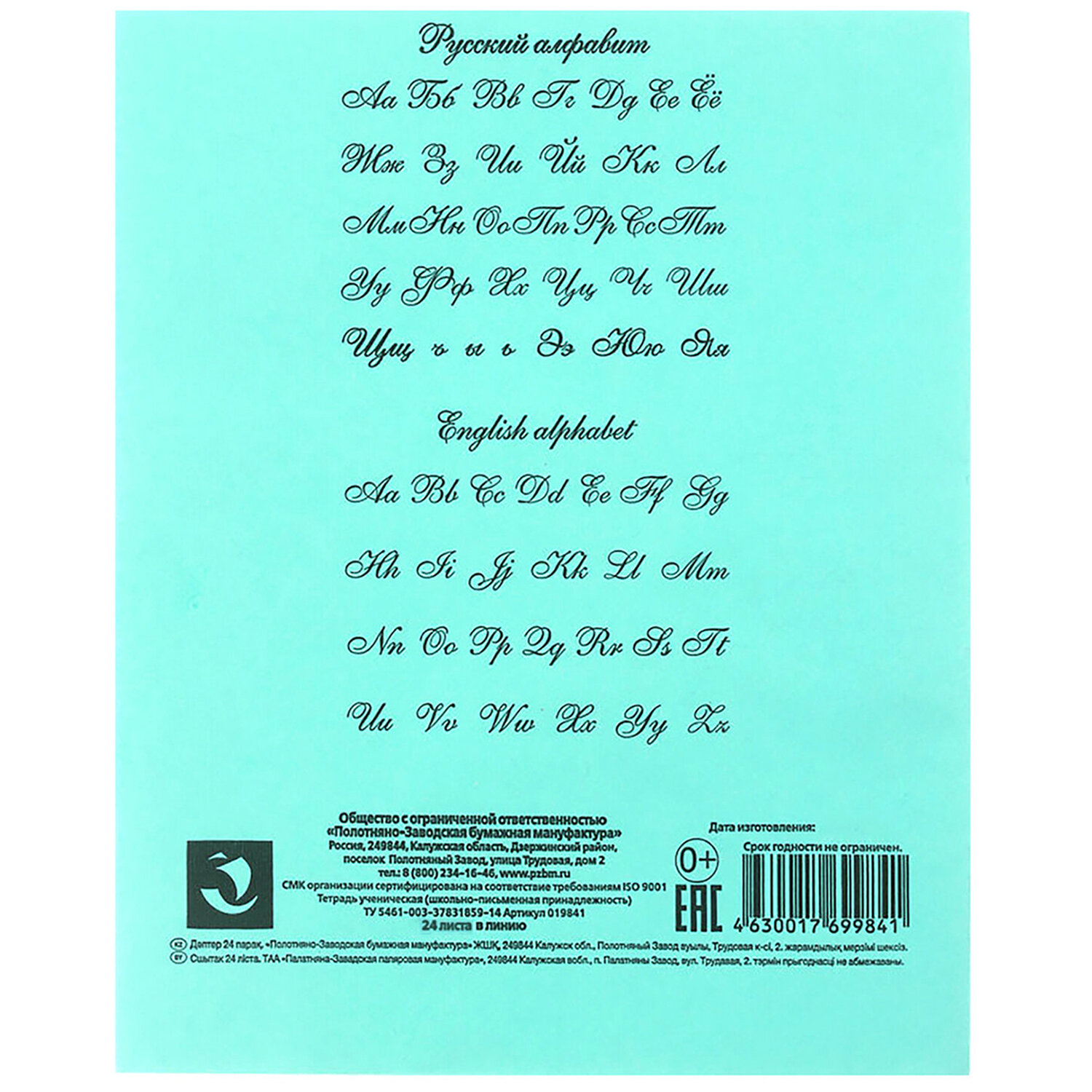 О товаре «Тетрадь ЗЕЛЁНАЯ обложка 24 л., линия с полями, офсет, "ПЗБМ", 19841»