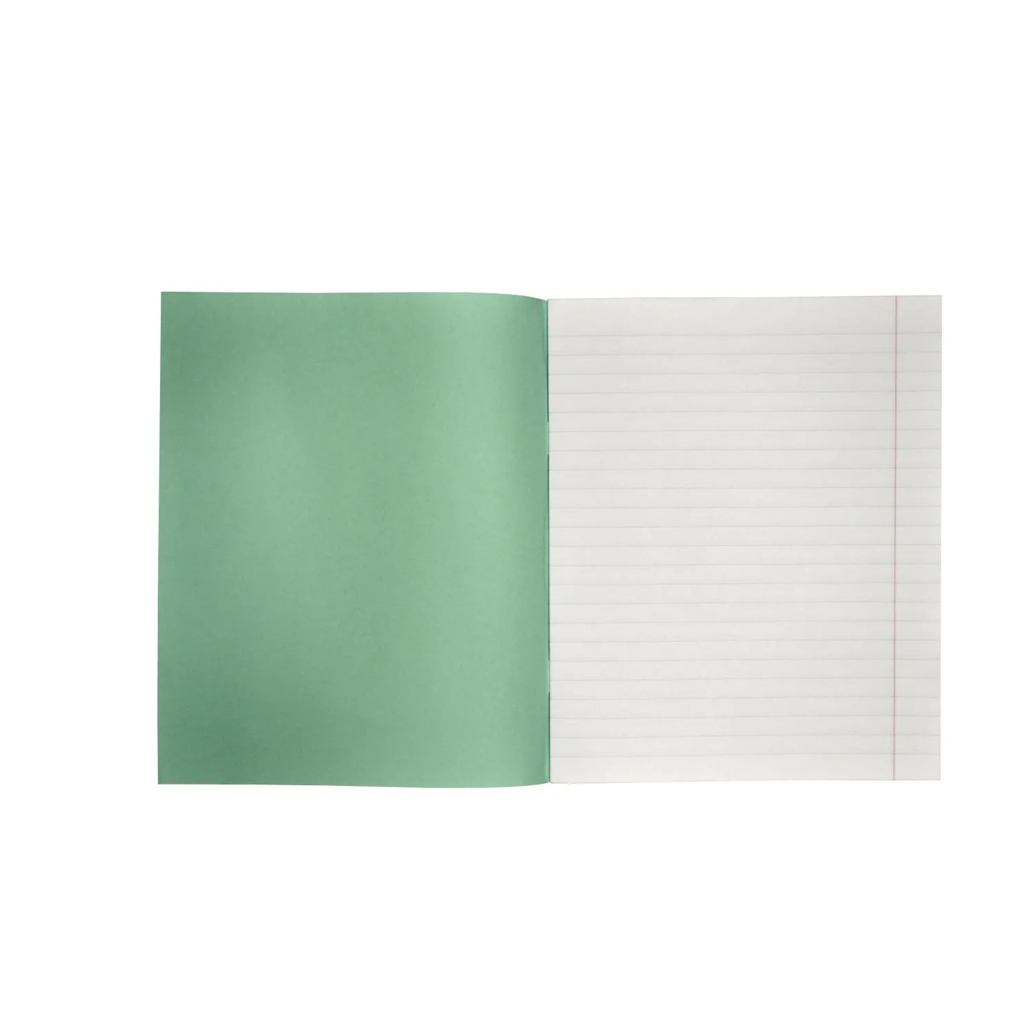 Внутренний блок 24 листа и плотностью 60 г/м2 из офсетной бумаги имеет линовку в линию с полями. Внутренний блок 92-100% белизны. Обложка также изготовлена из офсета плотностью 80 г/м2. Скрепка надежно скрепляет листы между собой.