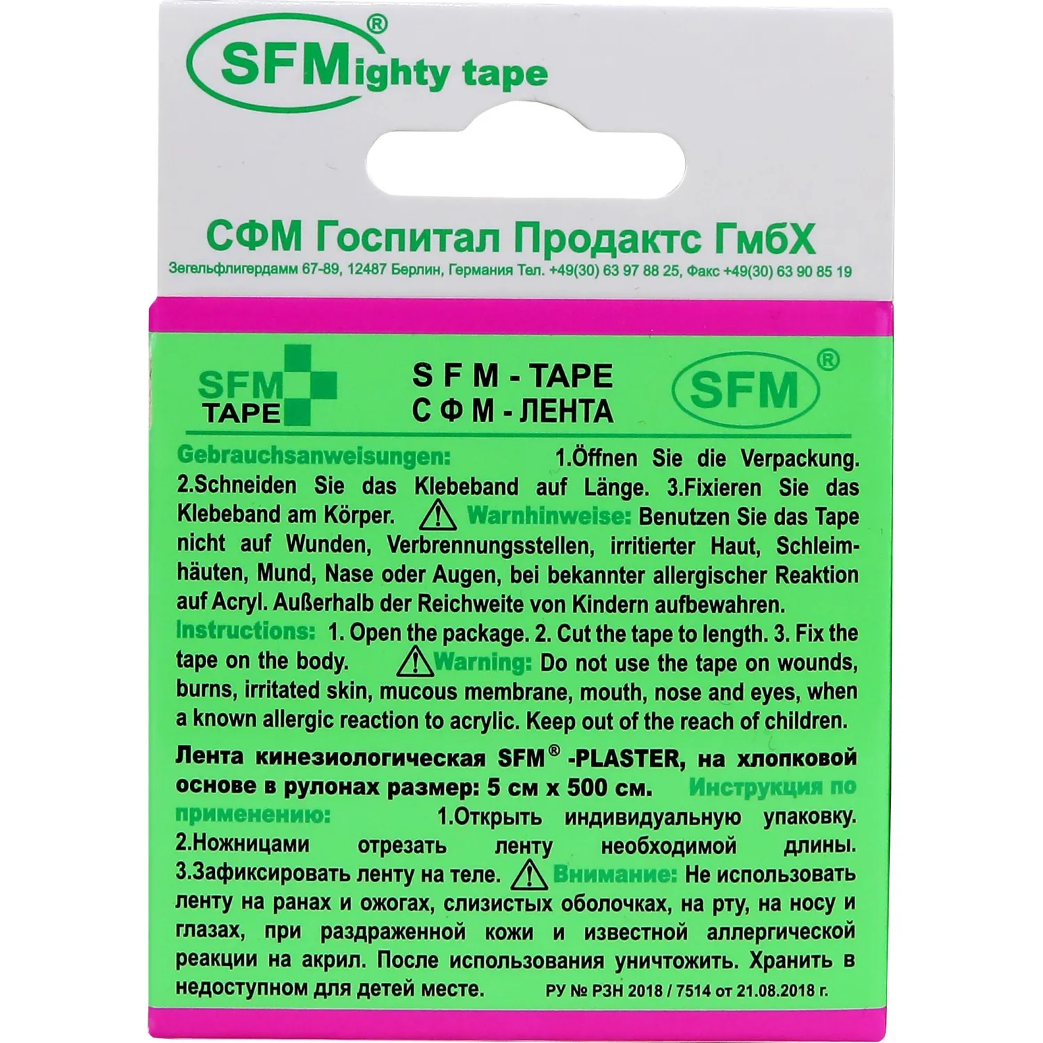 Производство SFM Hospital Products GmbH, Германия длина — 500 см; ширина — 5 см; легко отрезать; эластичный; воздухопроницаемый; хорошо приклеивается; просто снимается; есть предел прочности при растяжении; без латекса; рулон с бумажным сердечником; срок годности — 5 лет.