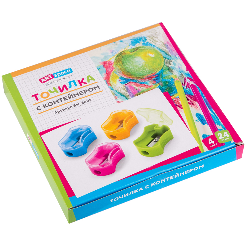 Точилка пластиковая ArtSpace 1 отверстие, контейнер, ассорти, пакет