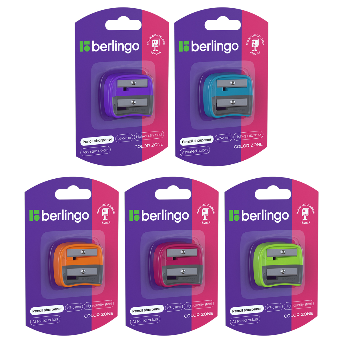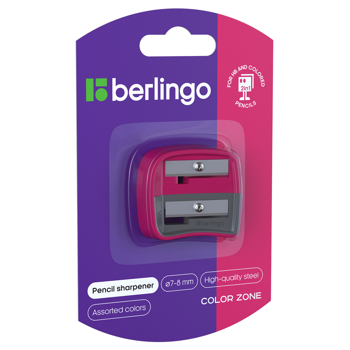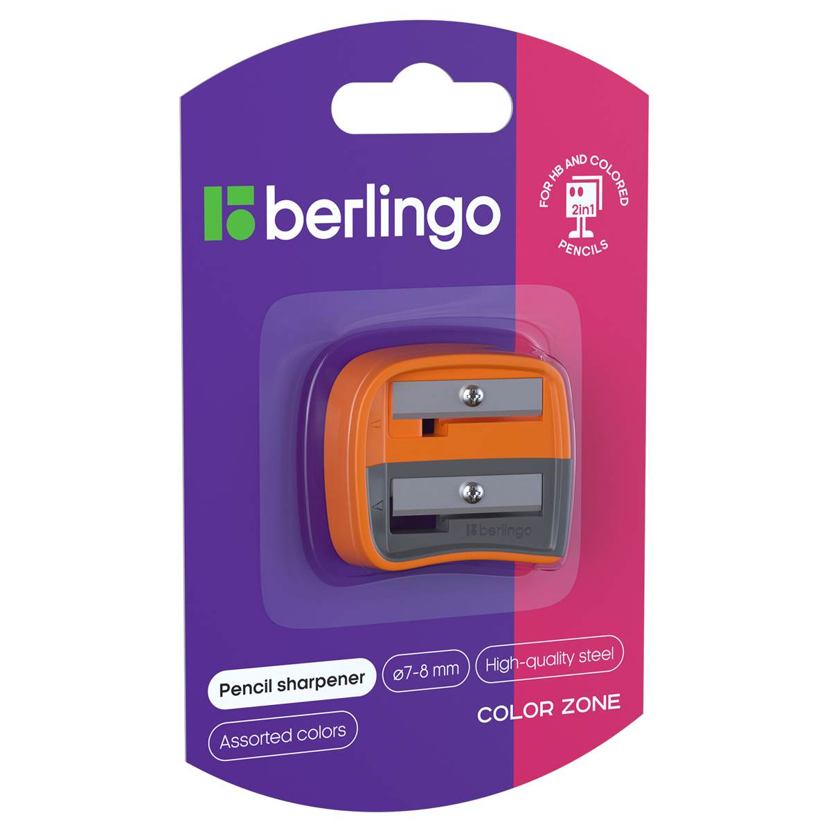 О товаре «Точилка пластиковая Berlingo "Color Zone Duo", 2 отверстия, для цветных и ч/г карандашей, блистер, ассорти»