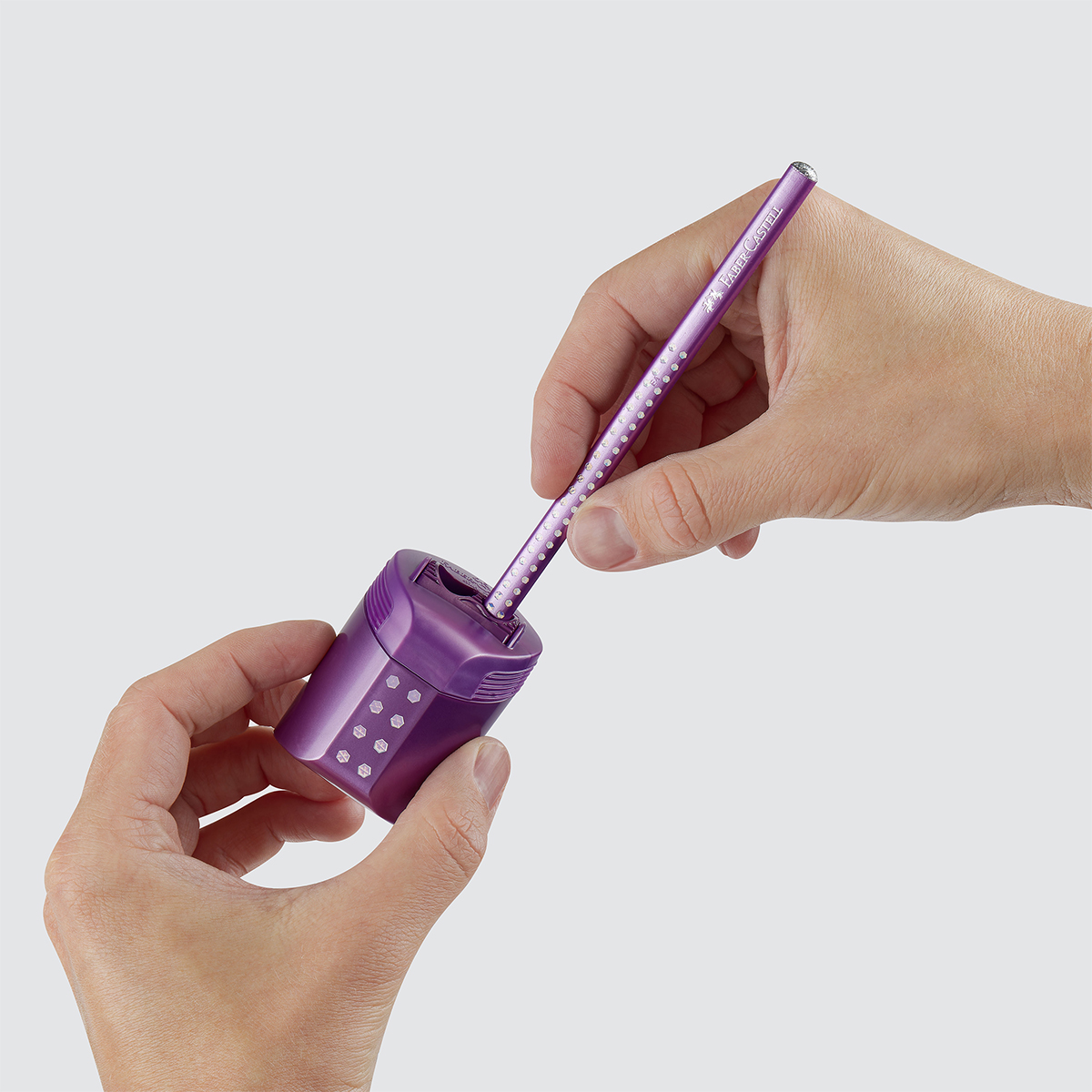 Новинка – точилка серии Sparkle от легендарного немецкого производителя Faber-Castell подходит для всех типов цветных и чернографитных карандашей. Лезвия изготовлены из высококачественной стали с идеальной заточкой. Материал корпуса – пластик. Точилка имеет контейнер для сбора стружки во время затачивания и два отверстия для затачивания карандашей стандартного размера и Jumbo. Цвет корпуса: ассорти.