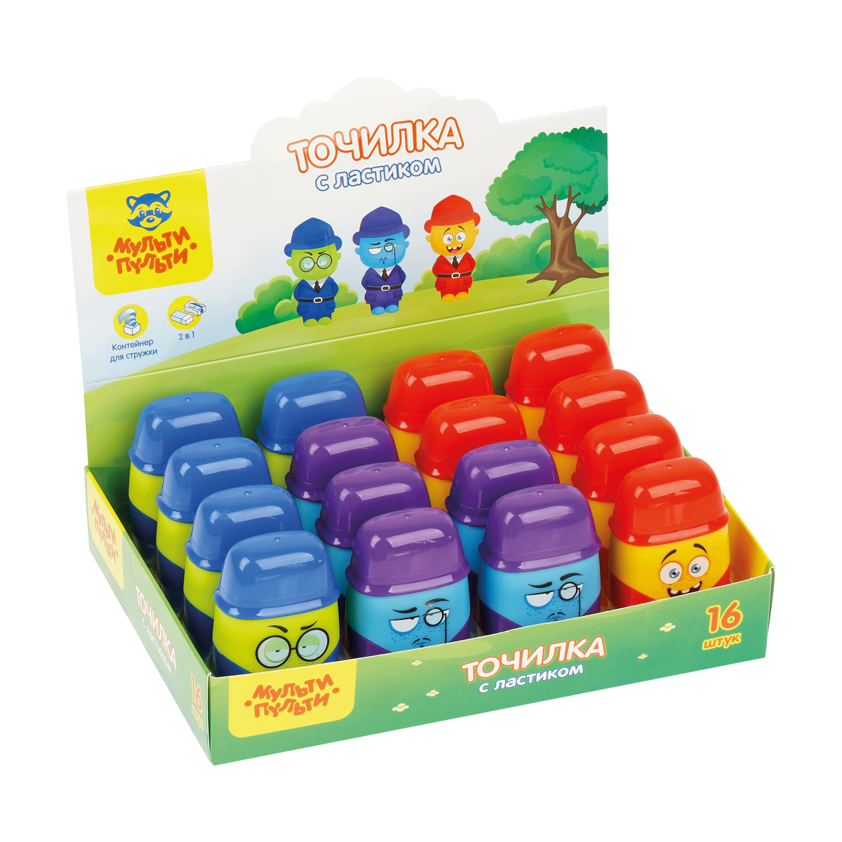 О товаре «Точилка пластиковая с ластиком Мульти-Пульти "Человечки" 2 отверстия, контейнер, ассорти»