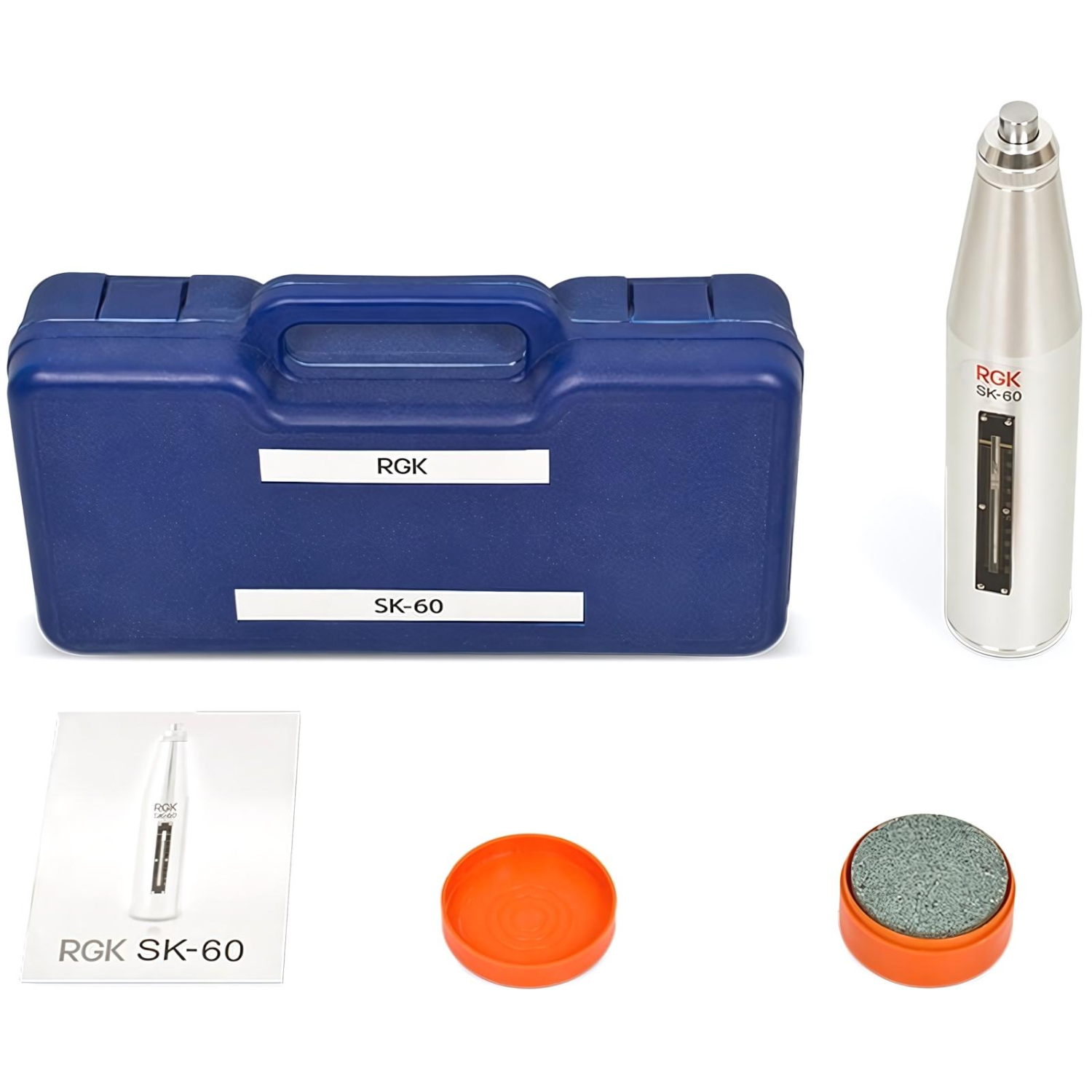 Склерометр RGK SK-60 предназначен для определения прочности на сжатие строительных материалов (бетона, камня и т. д.) в диапазоне 10–60 Мпа по ГОСТ 22690. Принцип работы RGK SK 60 основан на измерении высоты отскока бойка в у.е. шкалы прибора о контролируемую поверхность объекта, что является косвенной характеристикой прочности на сжатие. Измеритель прочности бетона RGK SK 60 — это традиционный неразрушающий тестовый инструмент, который используется для определения сопротивления сжатию или твердости застывшего бетона и камня. Склерометр обеспечивает быструю и простую проверку для получения результата на месте. RGK SK-60 выбор профессионалов! Склерометр RGK SK 60 является лучшим решением для оперативного контроля объектов строения на прочность. Он выполнен в прочном, удобном и информативном корпусе. Что не маловажно, RGK SK 60 поставляется в жестком кейсе для переноски и хранения, и комплектуется наждачным камнем для работы с неровными поверхностями.