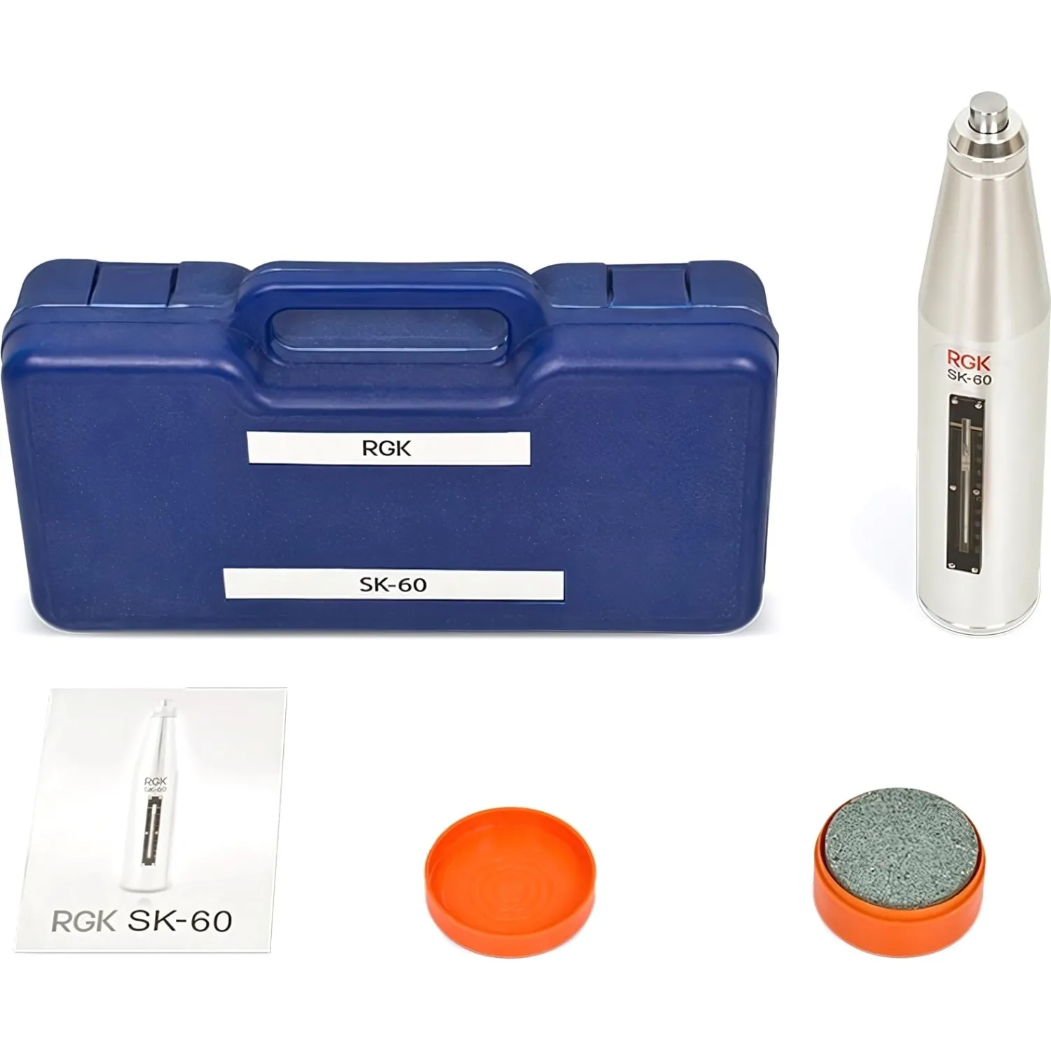 Толщиномер (склерометр) RGK SK-60 предназначен для определения прочности на сжатие строительных материалов (бетона, камня и т.д.) в диапазоне 10–60 Мпа по ГОСТ 22690.