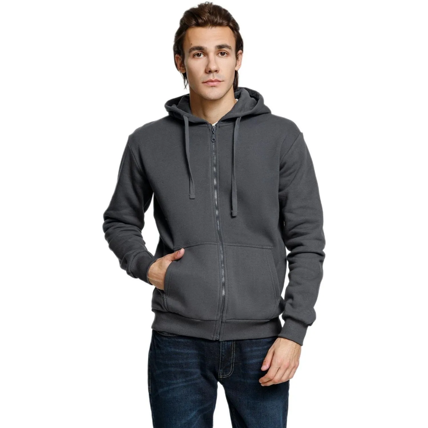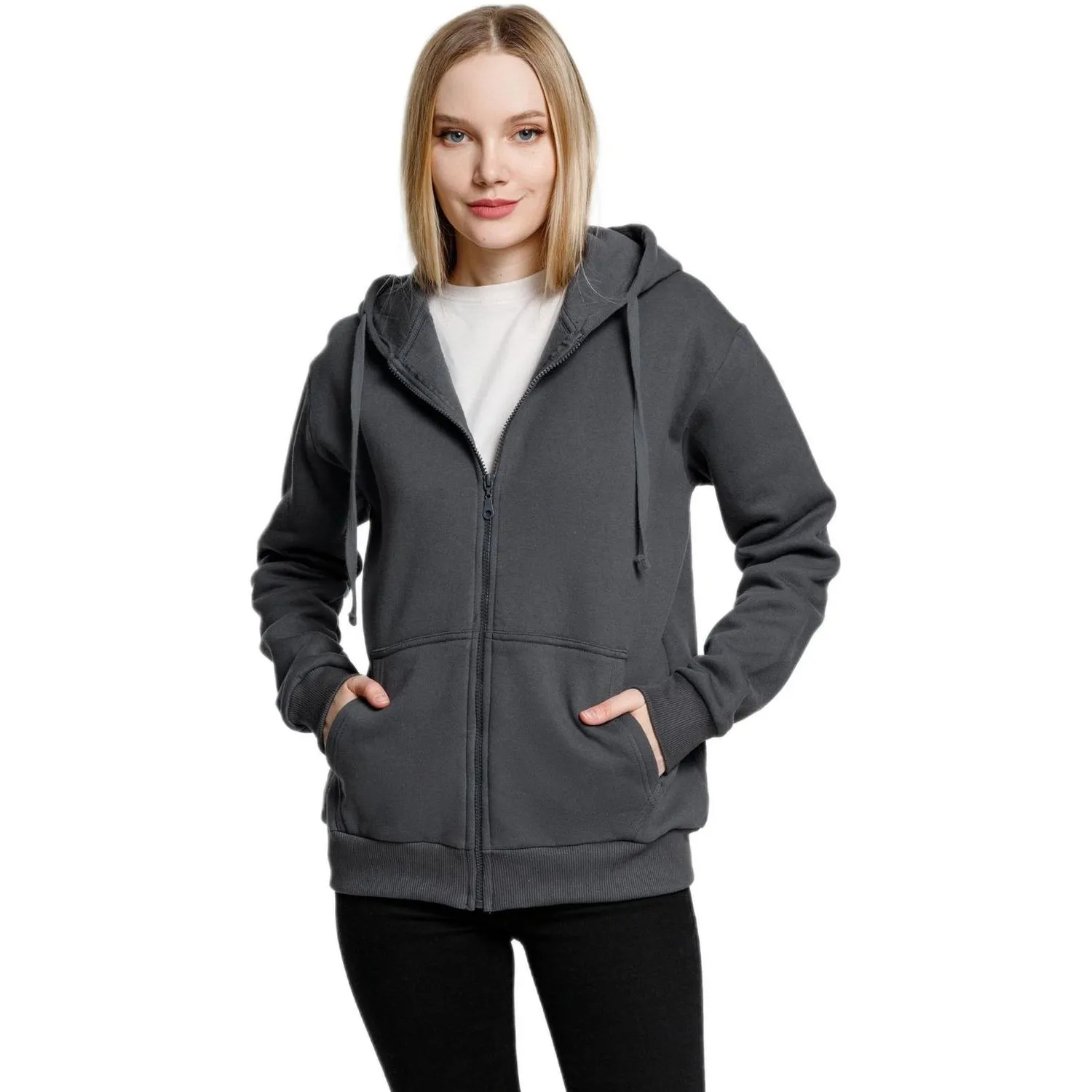 Толстовка Siverga Heavy 2.0 серого цвета на молнии и с капюшоном. Молния в тон изделия. Капюшон на подкладке. Два передних кармана.