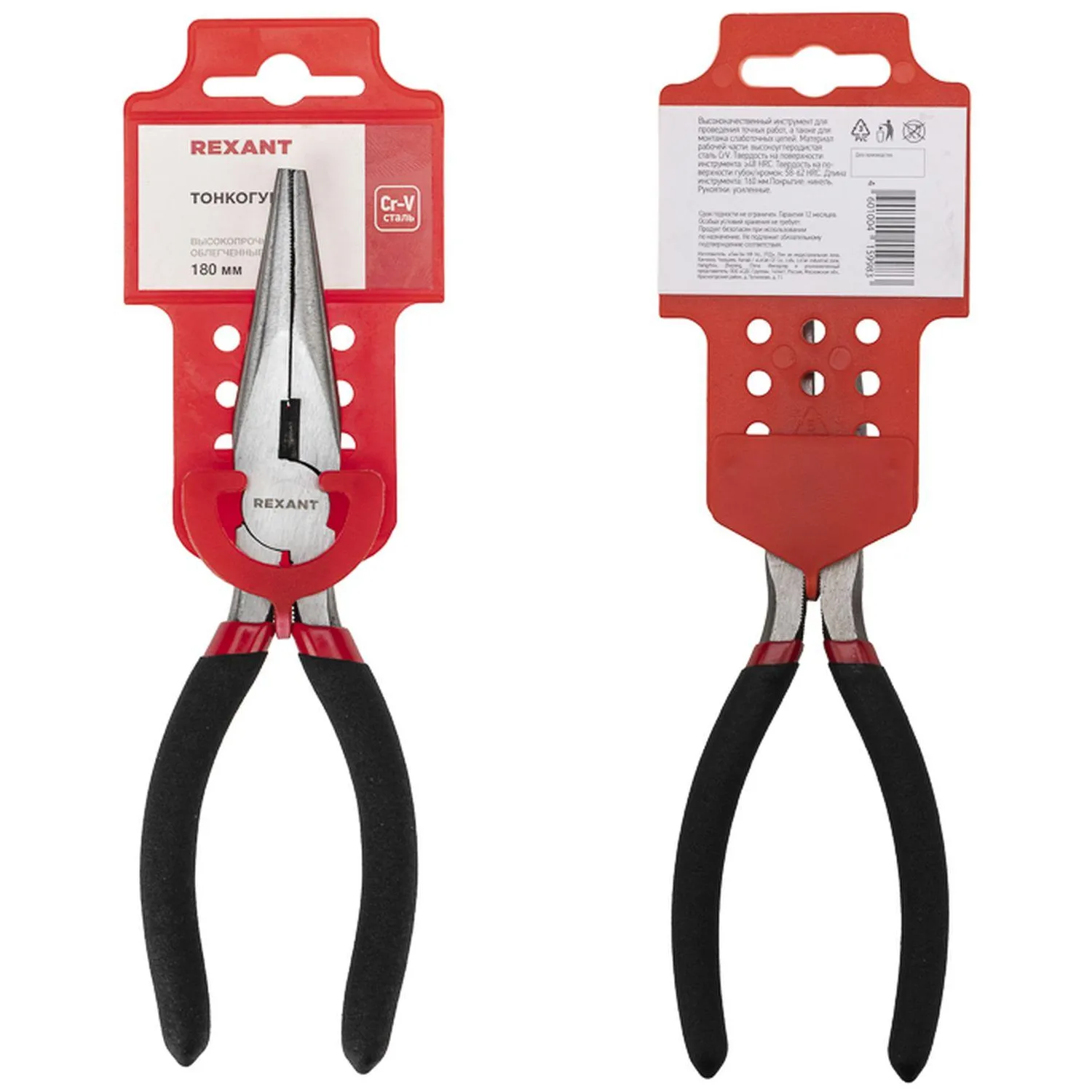 Тонкогубцы 180мм, обливные рукоятки REXANT 12-4618-1