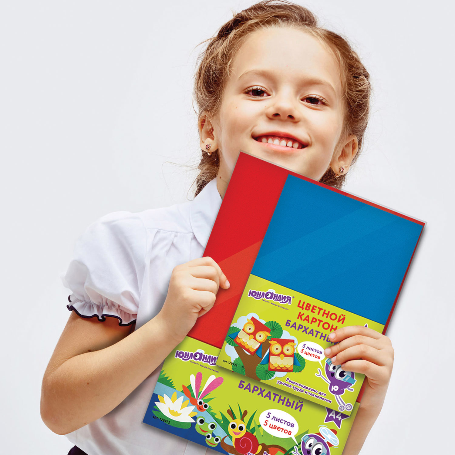 Бархатный цветной картон ЮНЛАНДИЯ обладает плотностью 180 г/м2, отличается приятной на ощупь фактурой, аппликации и поделки из него выглядят более объемными и реалистичными. Картон имеет однородную текстуру, не осыпается и не пачкает руки, легко режется ножницами, сгибается и клеится. Внутренний блок состоит из 5 листов формата А4 и 5 цветов.
