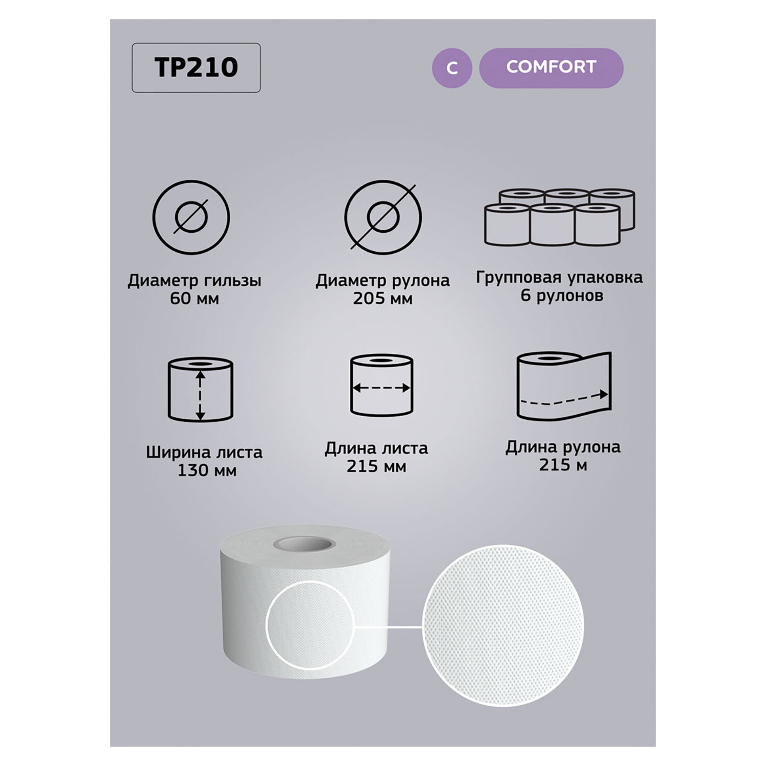 О товаре «Бумага туалетная 215 м, VEIRO (Система T8), КОМПЛЕКТ 6 шт., с центральной вытяжкой, Comfort, 2-слойная, TP210»