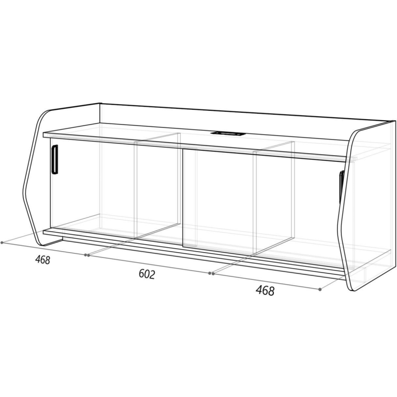 Внимание! Пожалуйста, проверяйте цвет изделия до начала сборки! Цвет на изображении товара в интернет-магазине или в печатном каталоге может отличаться от оригинала из-за особенностей цветопередачи. Тумба опорная оснащена системой раздвижения SysLine S от Hettich (без доводчиков). Крышка тумбы выполнена из ДСП 22 мм, кромка 1 мм, раздвижные фасады - ДСП 16 мм, кромка 1 мм. Две внутренние перегородки из ДСП 16 мм обработаны кромкой 1 мм разделяют внутреннее пространство тумбы на 3 отсека: по центру 602 мм, по бокам - 2 отсека по 468 мм. Задняя стенка, две фигурные боковины и нижний полик тумбы из ДСП 16 мм, обработанного кромкой 1 мм. Законодательные и технические документы