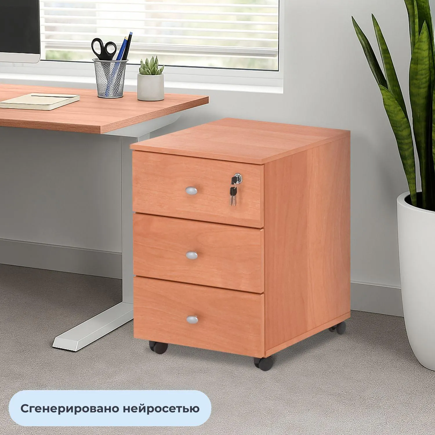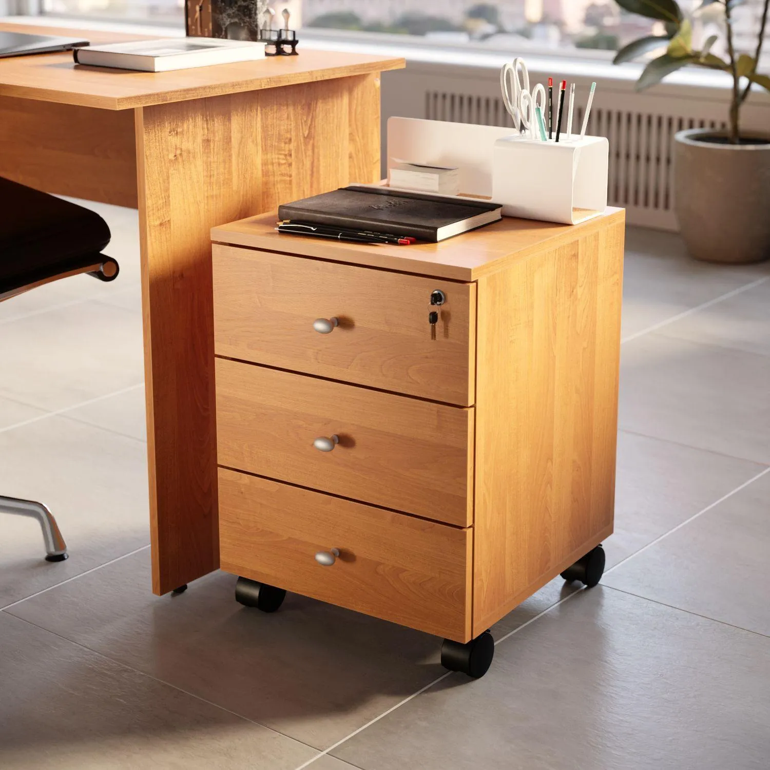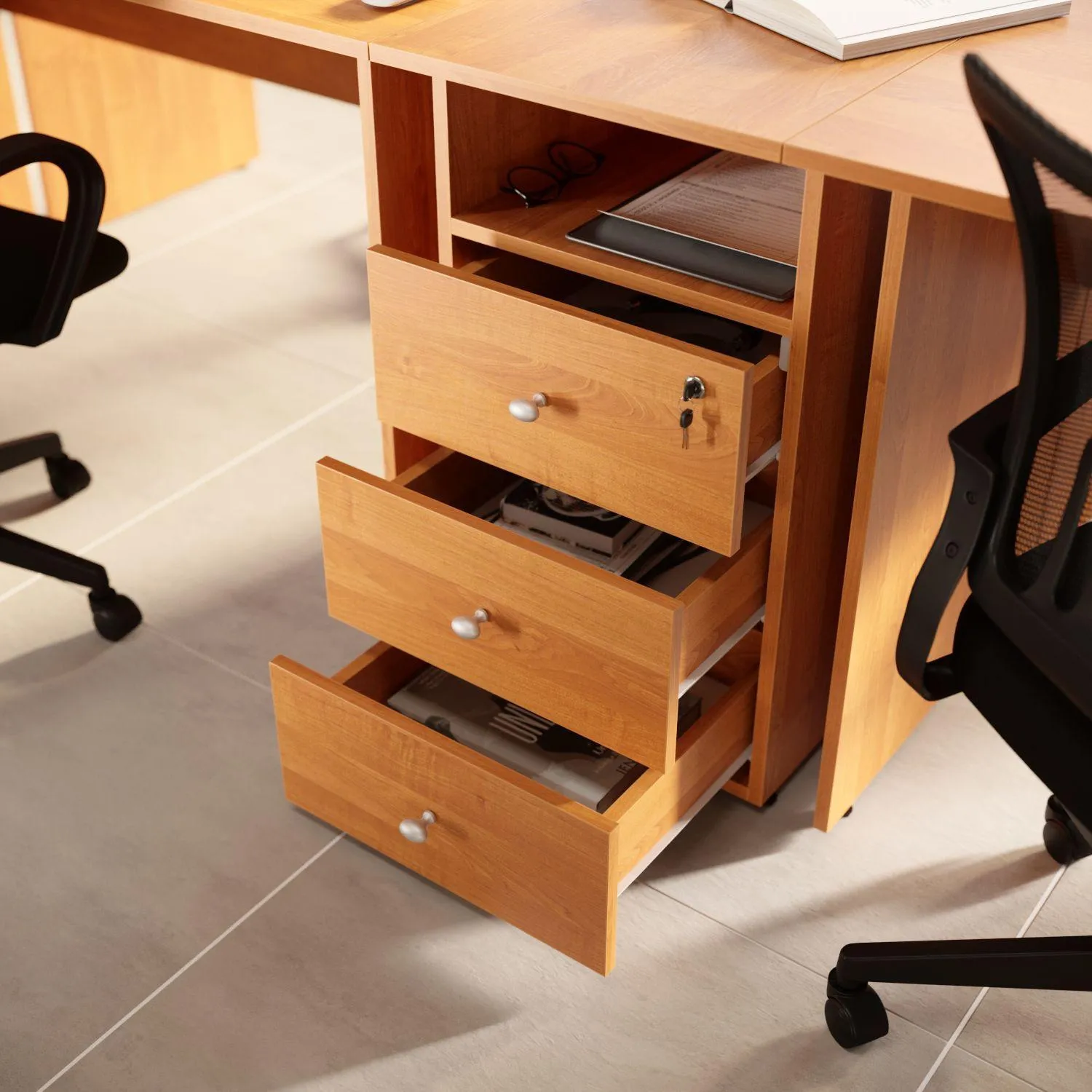 О товаре «Тумба подкатная Easy Оптима LT с замком (ольха, 400x420x530 мм, 3 ящика)»