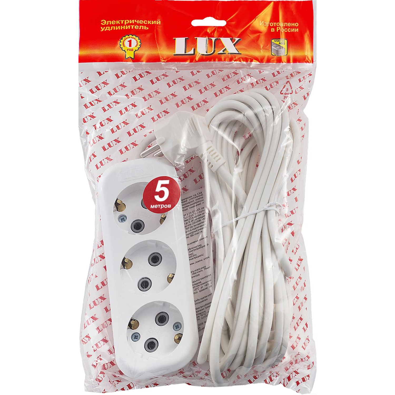 Удлинитель LUX У3-Е-05 3 розетки 5 м с заземлением белый