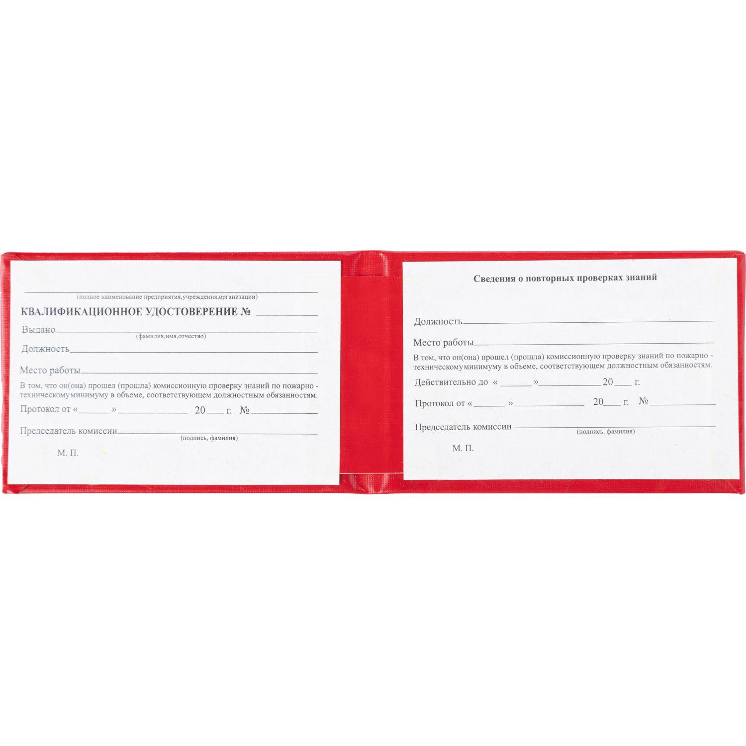 О товаре «Удостоверение для проверки знаний пожарно-технического минимума твердая обложка (5 штук в упаковке)»