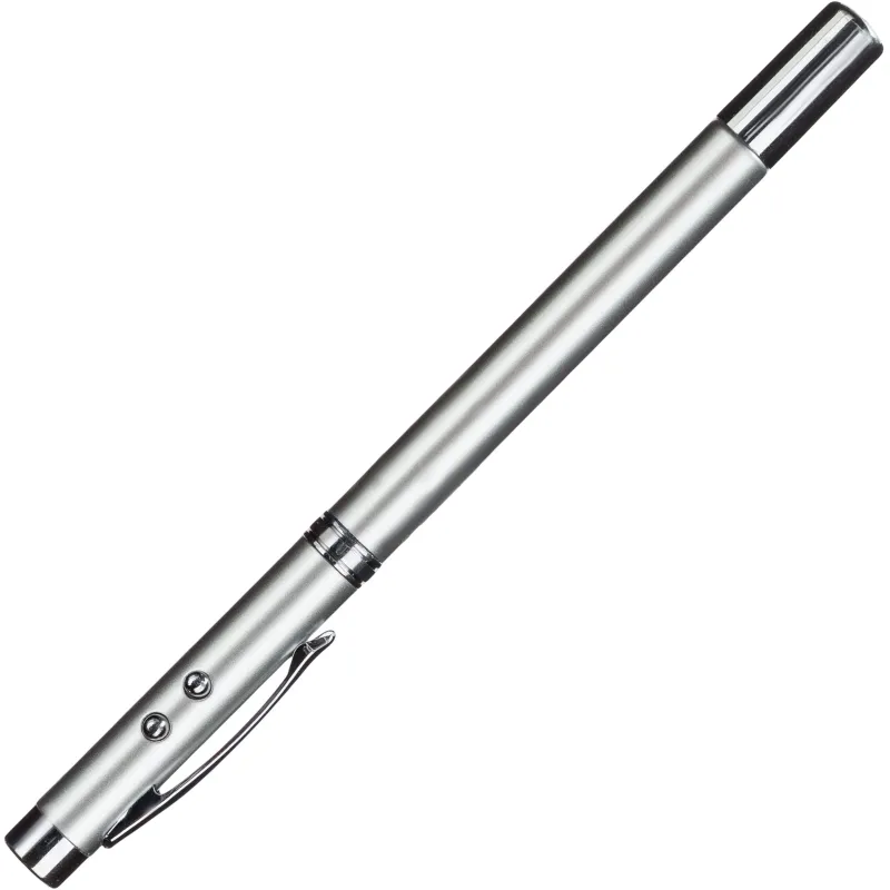 Лазерная указка 5 в 1: с точкой красного свечения, LED-фонарем, магнитом, телескопической указкой и шариковой ручкой. Является эффективным средством для привлечения внимания аудитории к информации, отображенной на доске или экране.