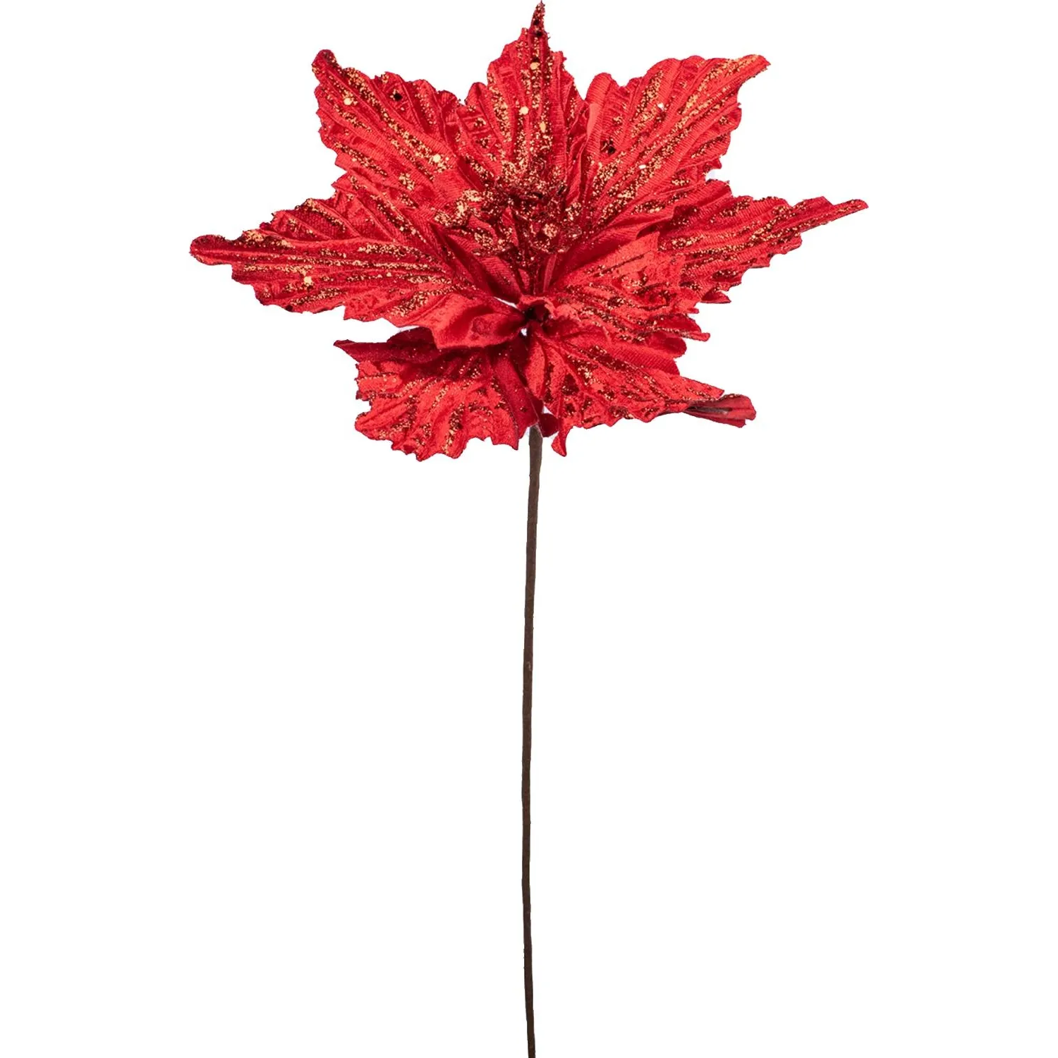 Интерьерное украшение в виде красного цветка на стебле — это идеальный вариант элемента декора. Цветок станет отличным украшением вазы, дополнит собой праздничный интерьер и просто будет радовать окружающих. Размер: 46×28×28 см. Украшение выполнено из полиэстера.