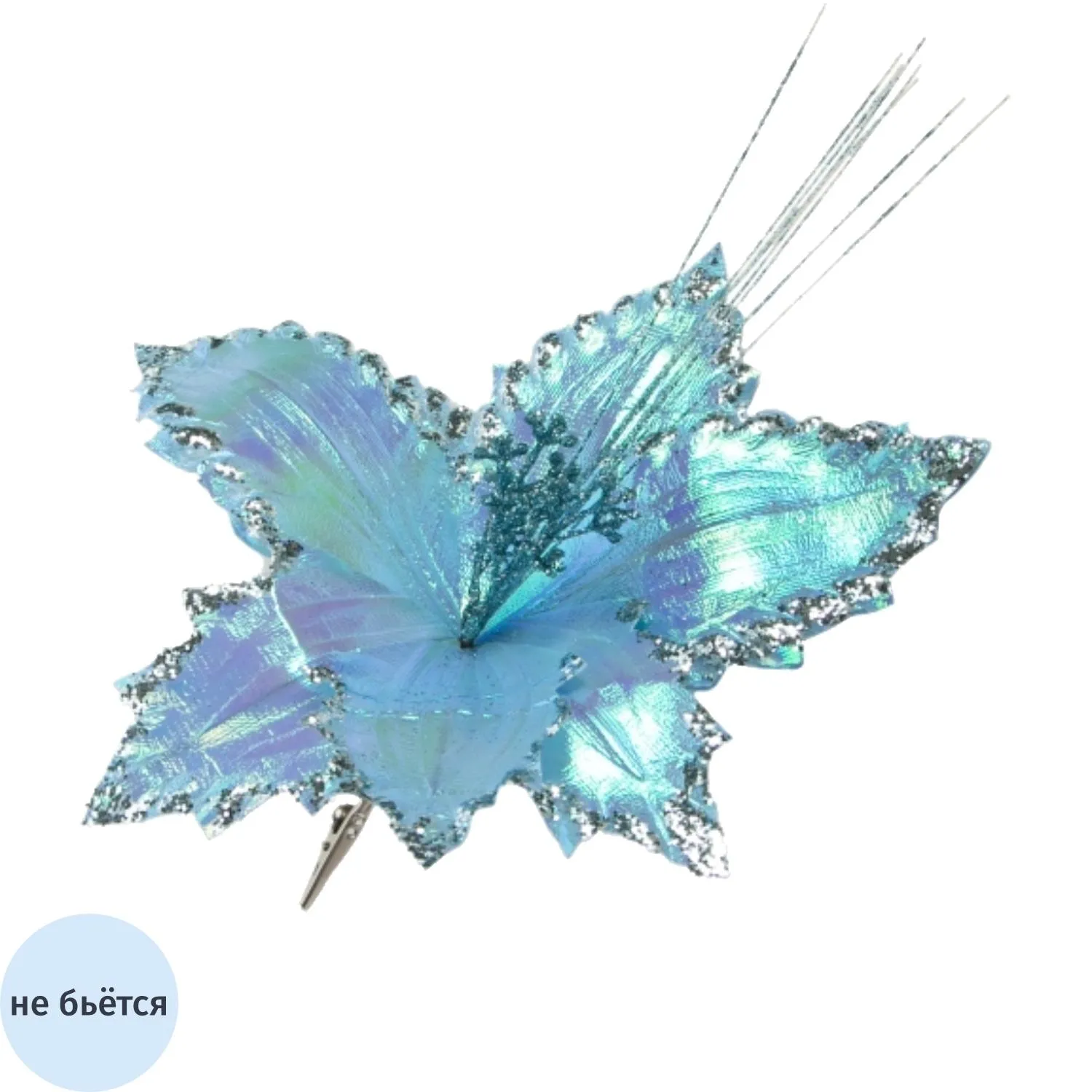О товаре «Украшение НГ ёлочное Лилия голубой полиэстер,на клипсе 33x33x33см арт.88882»