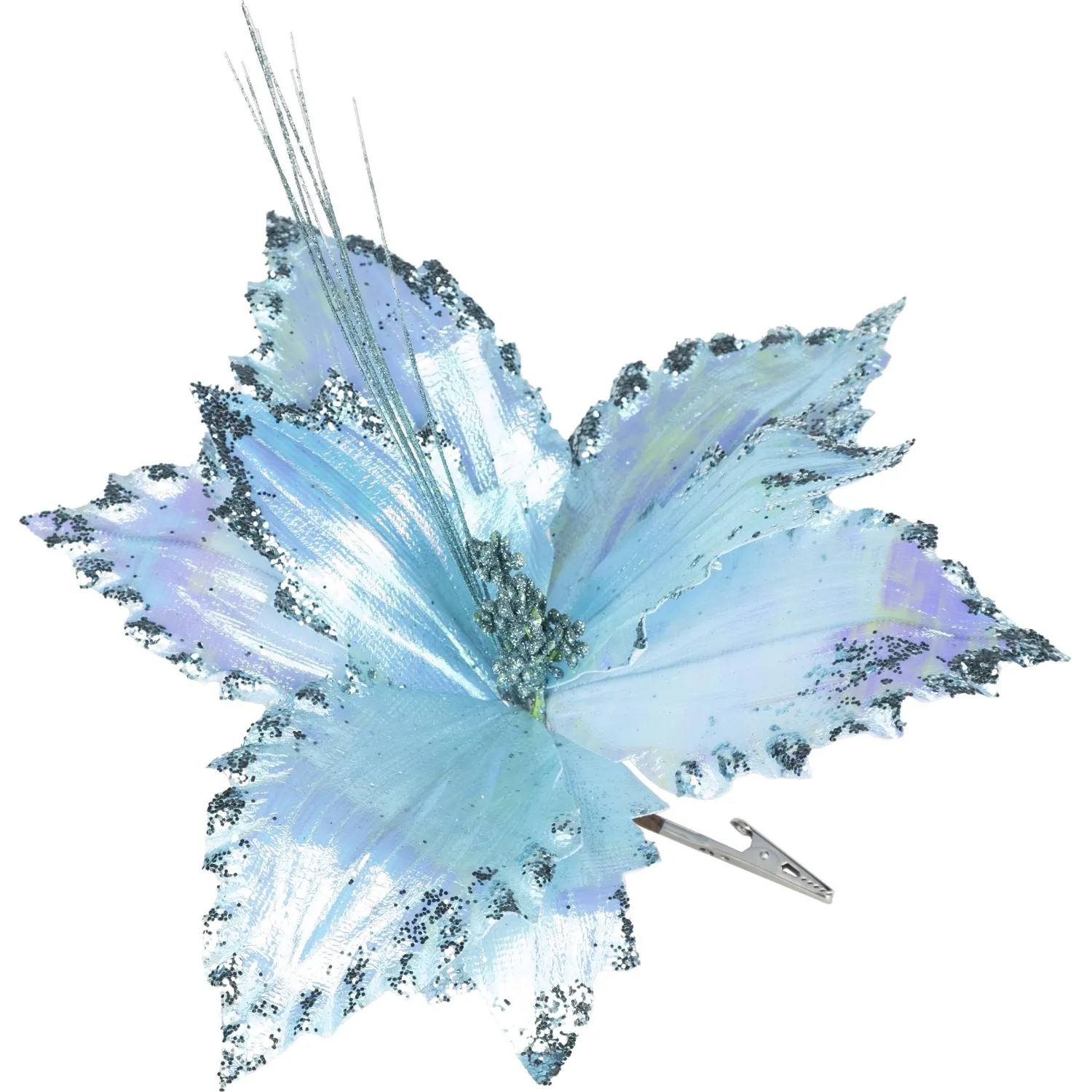 Украшение НГ ёлочное Лилия голубой полиэстер,на клипсе 33x33x33см арт.88882