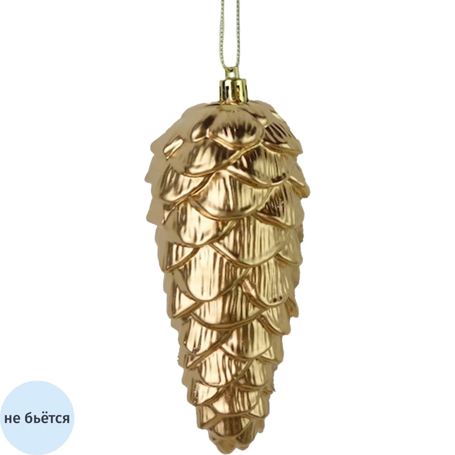 Эта очаровательная ёлочная игрушка изготовлена из прочного и лёгкого пластика. Игрушка выполнена в форме шишки, имеет золотистый цвет. Такое украшение сделает вашу ёлку по-настоящему праздничной. Идеально подходит для создания уютной атмосферы в доме.