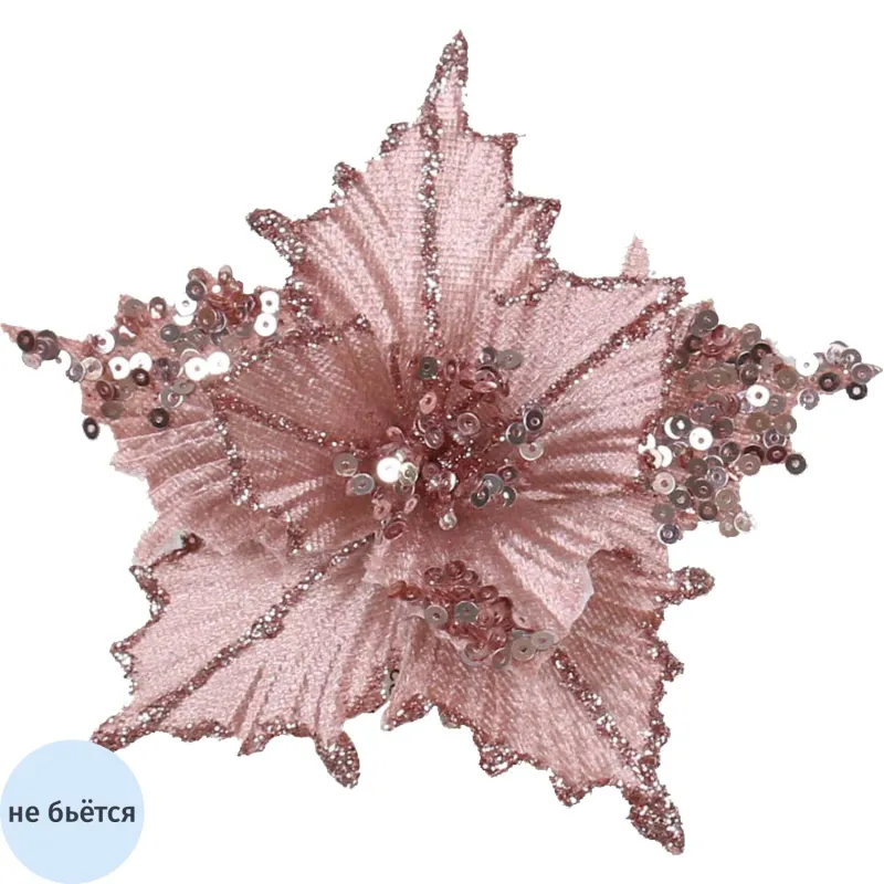 Новогоднее украшение на ёлку Цветок искусственный Пуансеттия (13×3×14 см)