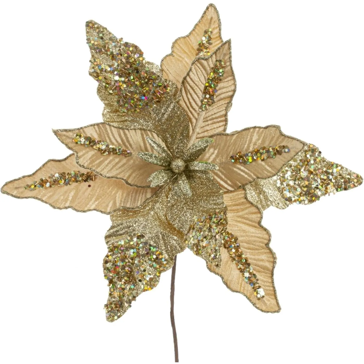 Украшение Цветок искусственный Пуансеттия полиэстер золотистое