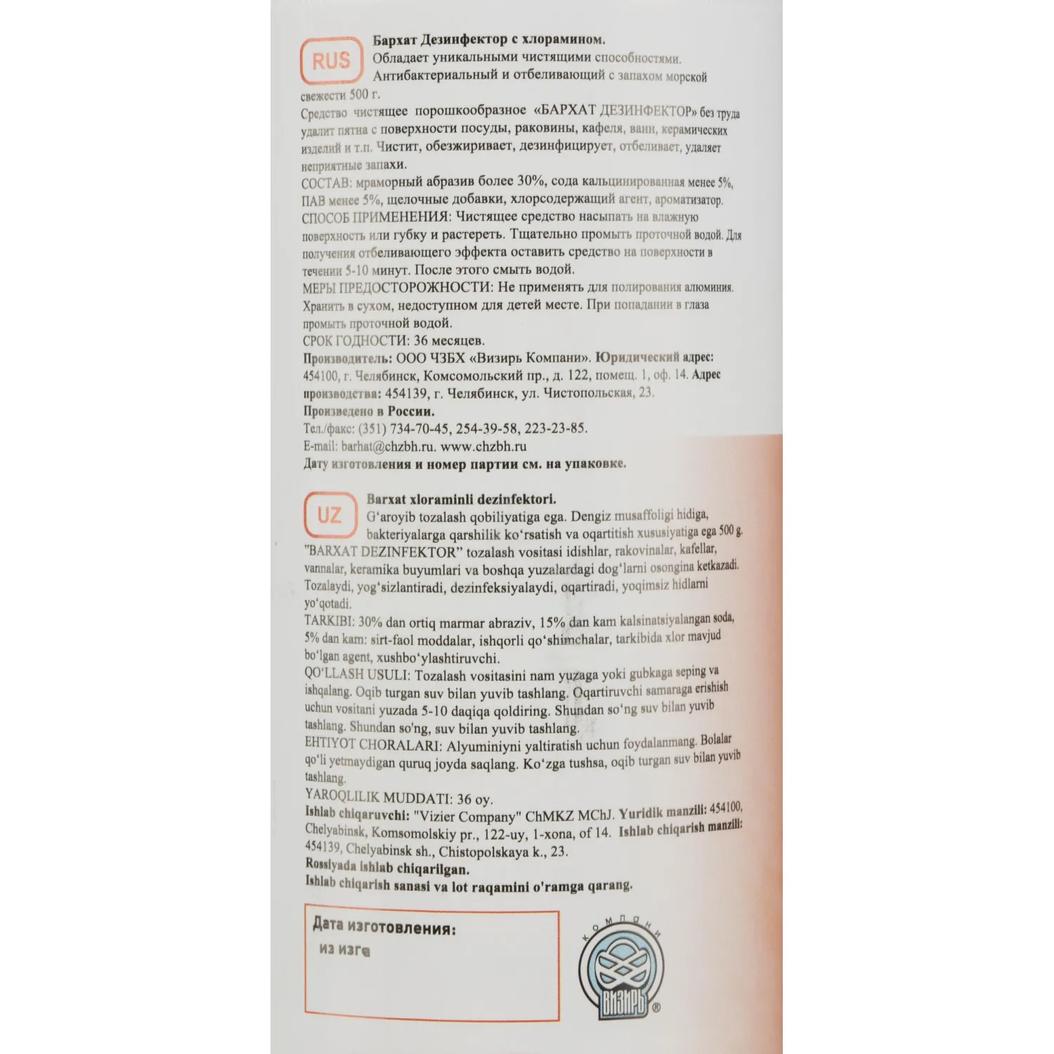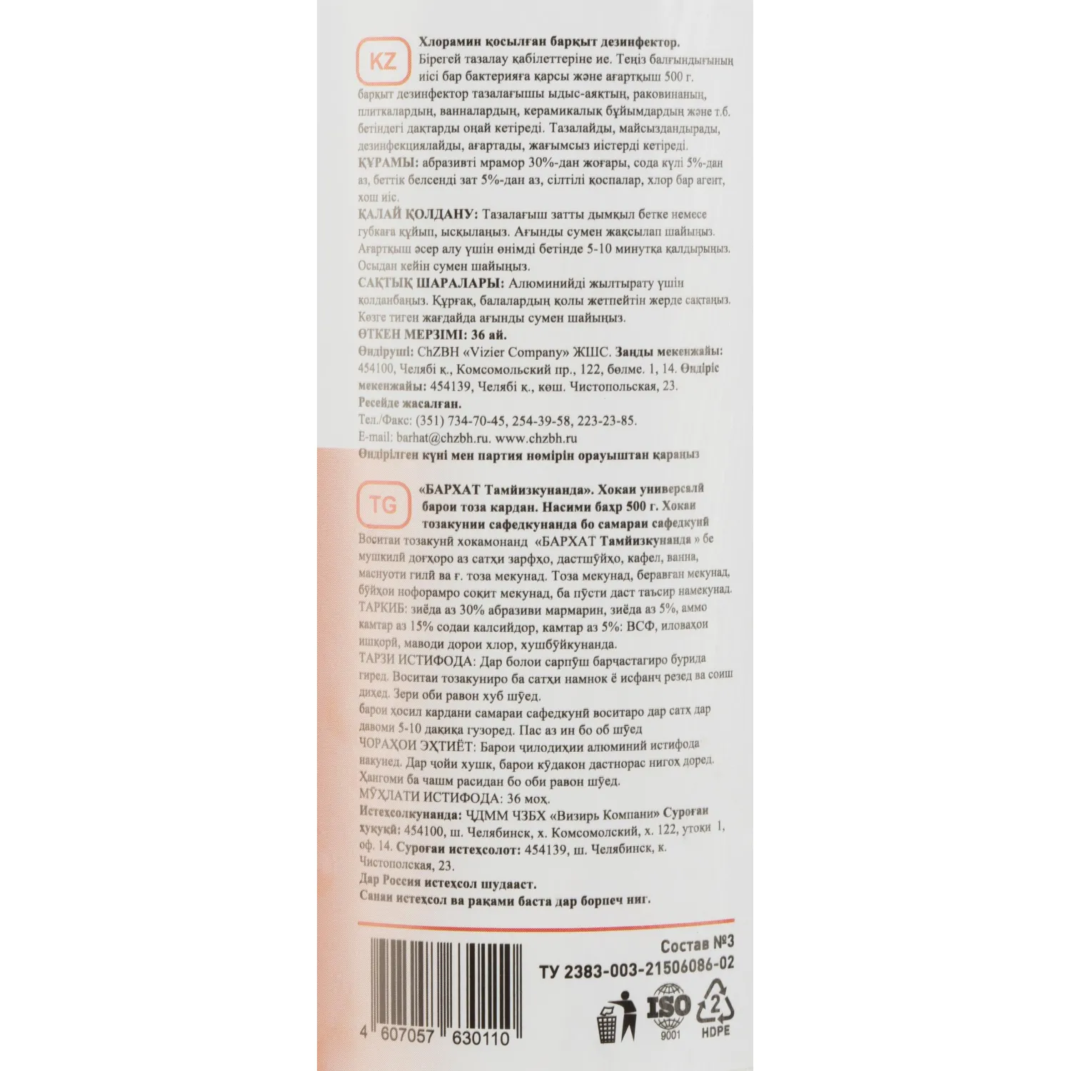О товаре «Универсальное чистящее средство Бархат Дезинфектор 500 г»