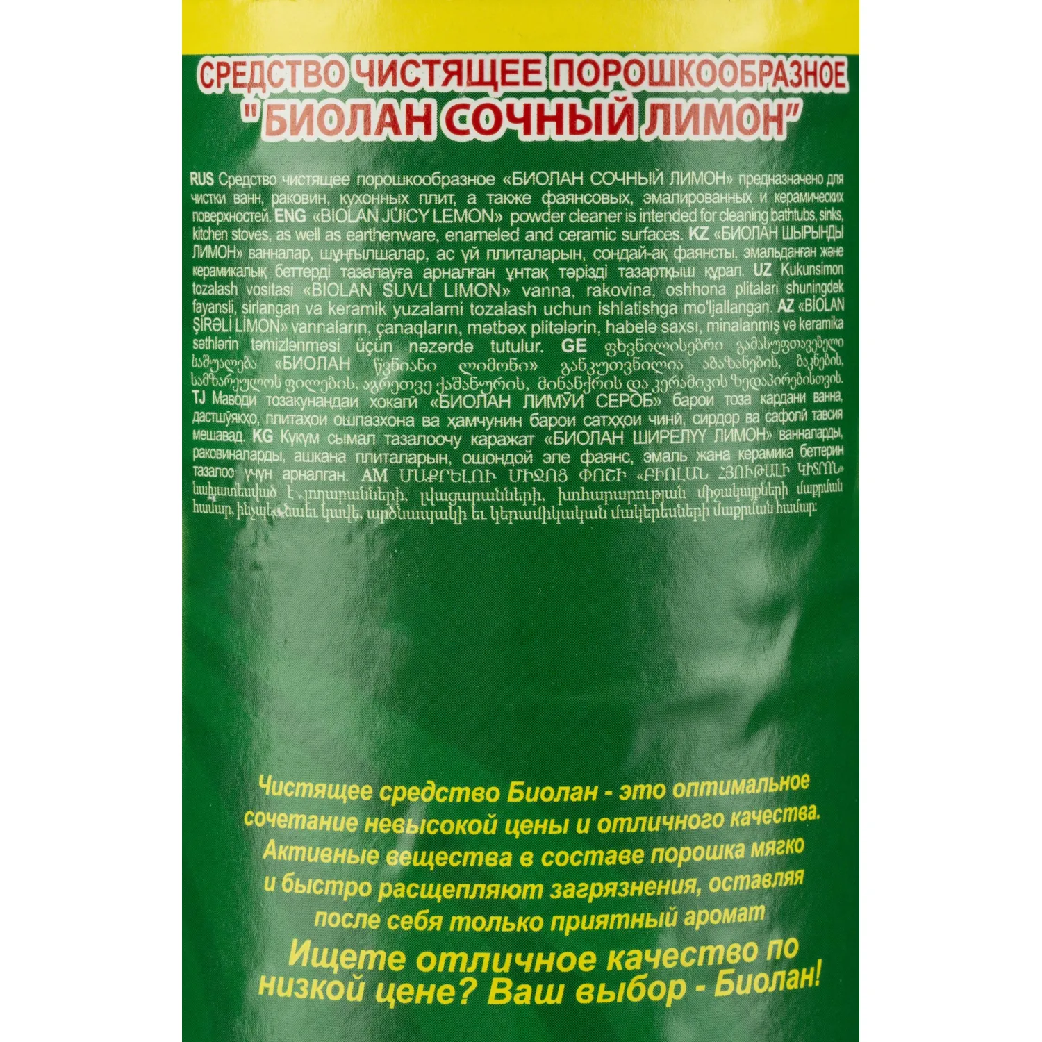 О товаре «Универсальное чистящее средство Биолан Сочный лимон порошок 400 г»