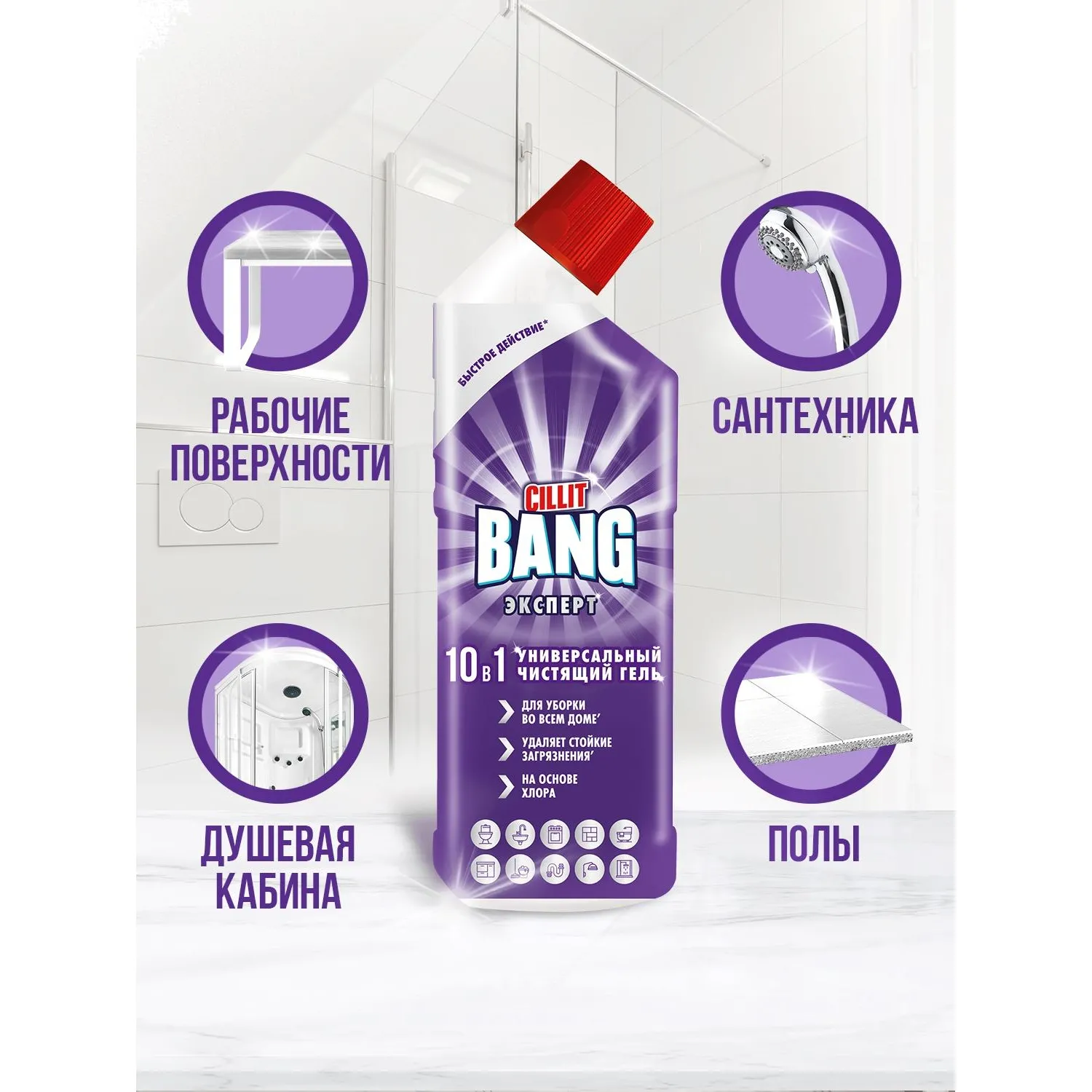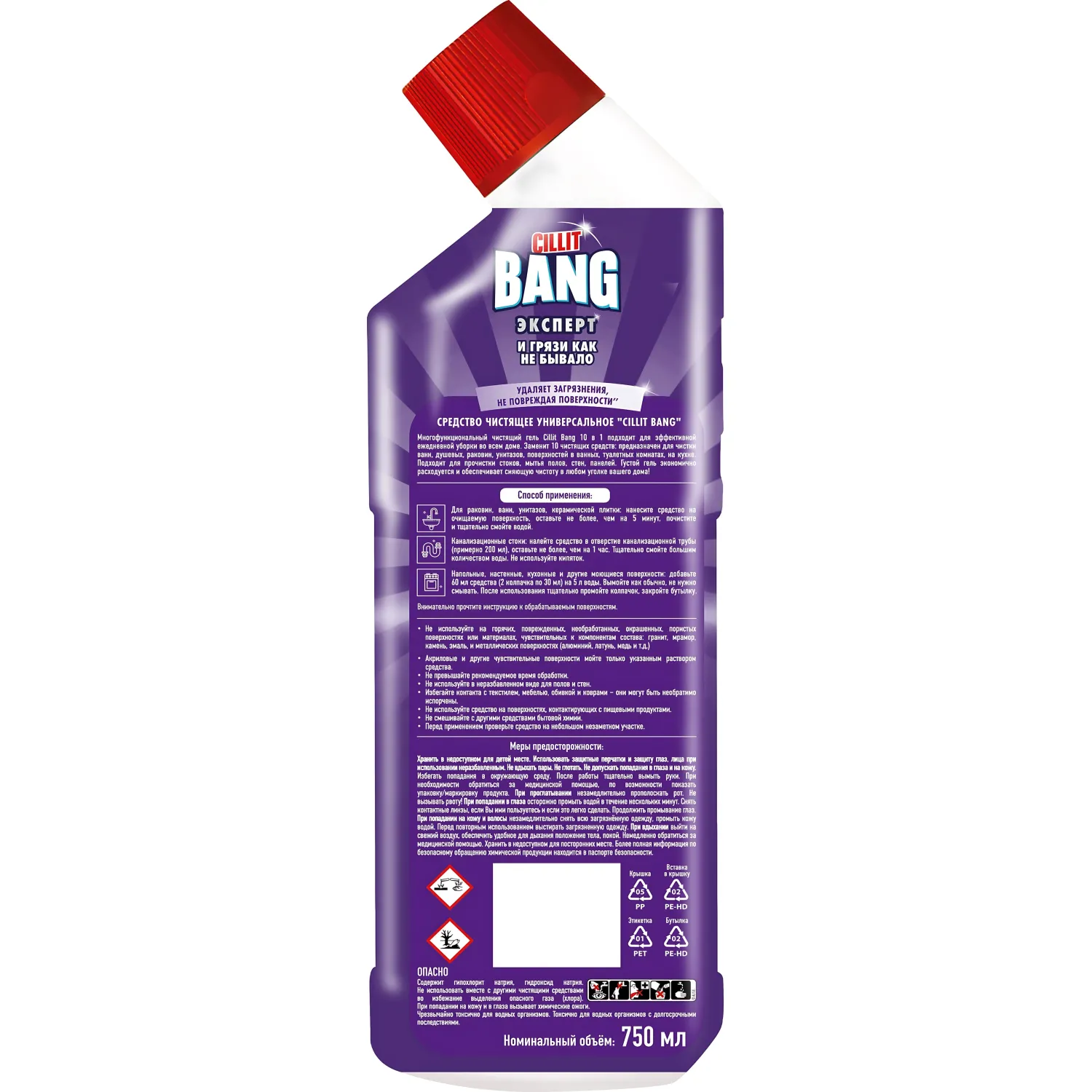Назначение: многофункциональный чистящий гель Cillit Bang 10 в 1 подходит для эффективной ежедневной уборки во всём доме. Заменит 10 чистящих средств: предназначен для чистки ванн, душевых, раковин, унитазов, поверхностей в ванных, туалетных комнатах, на кухне. Подходит для прочистки стоков, мытья полов, стен, панелей. Густой гель экономично расходуется и обеспечивает сияющую чистоту в любом уголке вашего дома.